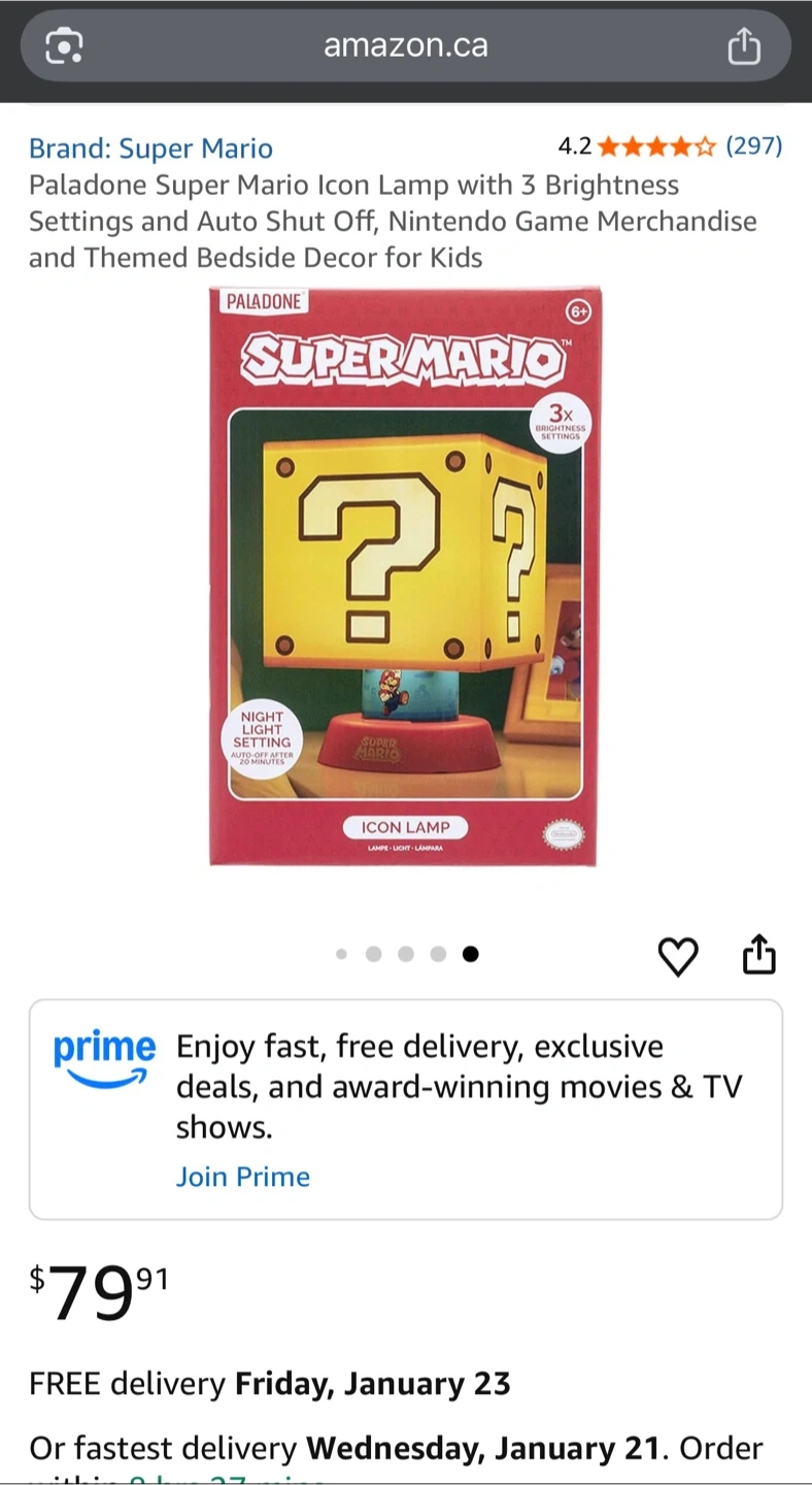 Selling a Super Mario Icon Lamp by Paladone! It's in excellent condition and comes with the original box. The lamp has 3 brightness settings and an auto shut-off feature. Originally bought for $79.91.