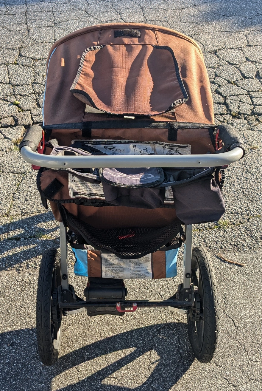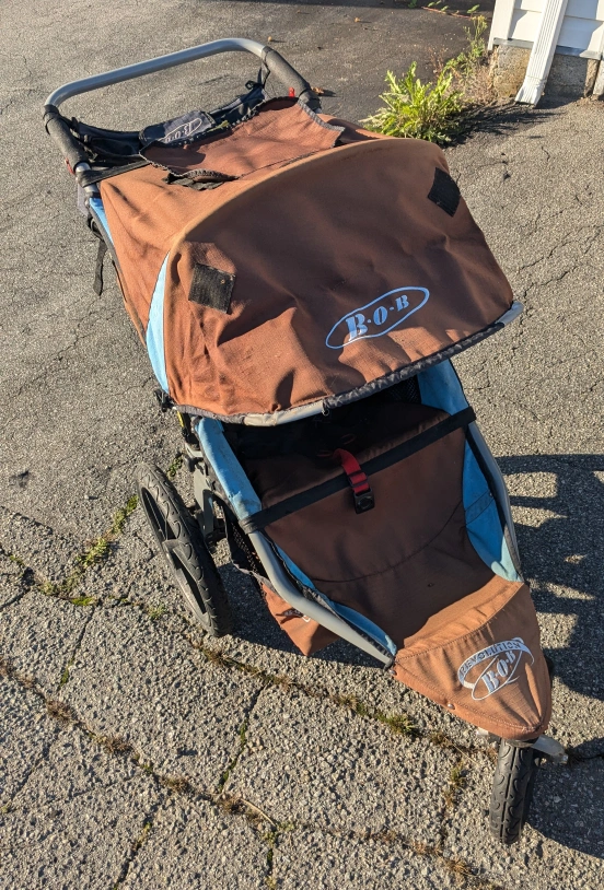 Bob's jogging stroller. has seen its fair share of miles, but still works fine. for people wanting to get some exercise and take their kid along with them. 40 or trade for a 750ml bottle of Captain Morgan Black Spiced rum ๐ดโโ ๏ธ