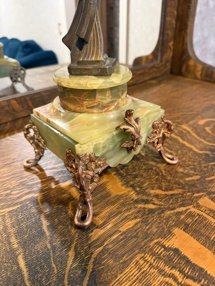 Art Deco Bronze Sculpture on Green Onyx Base