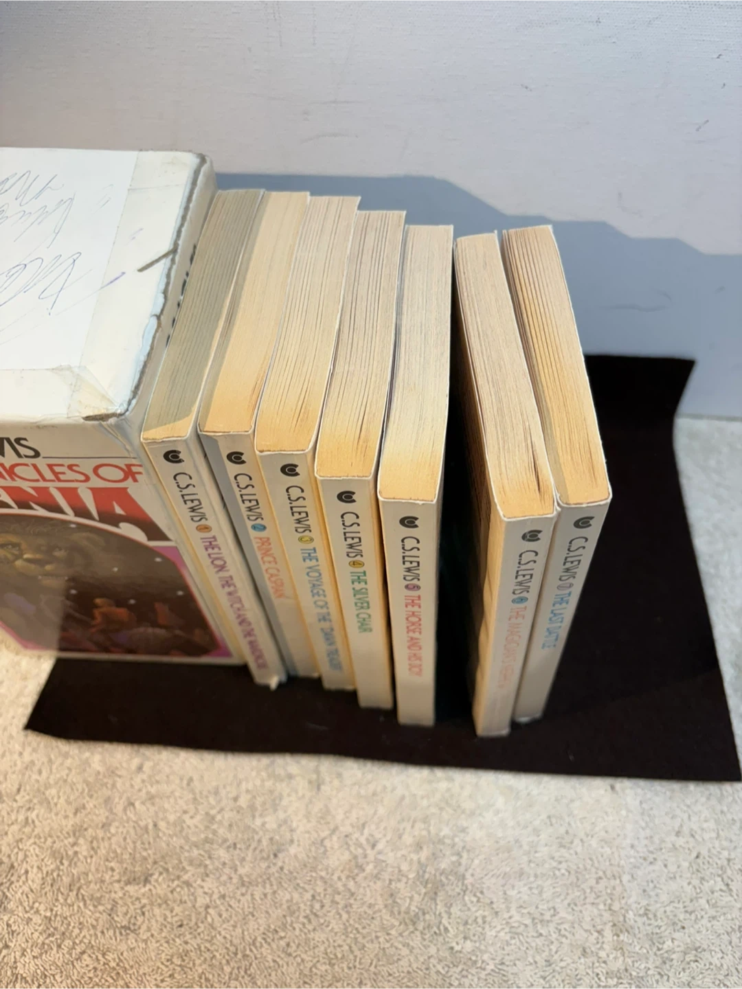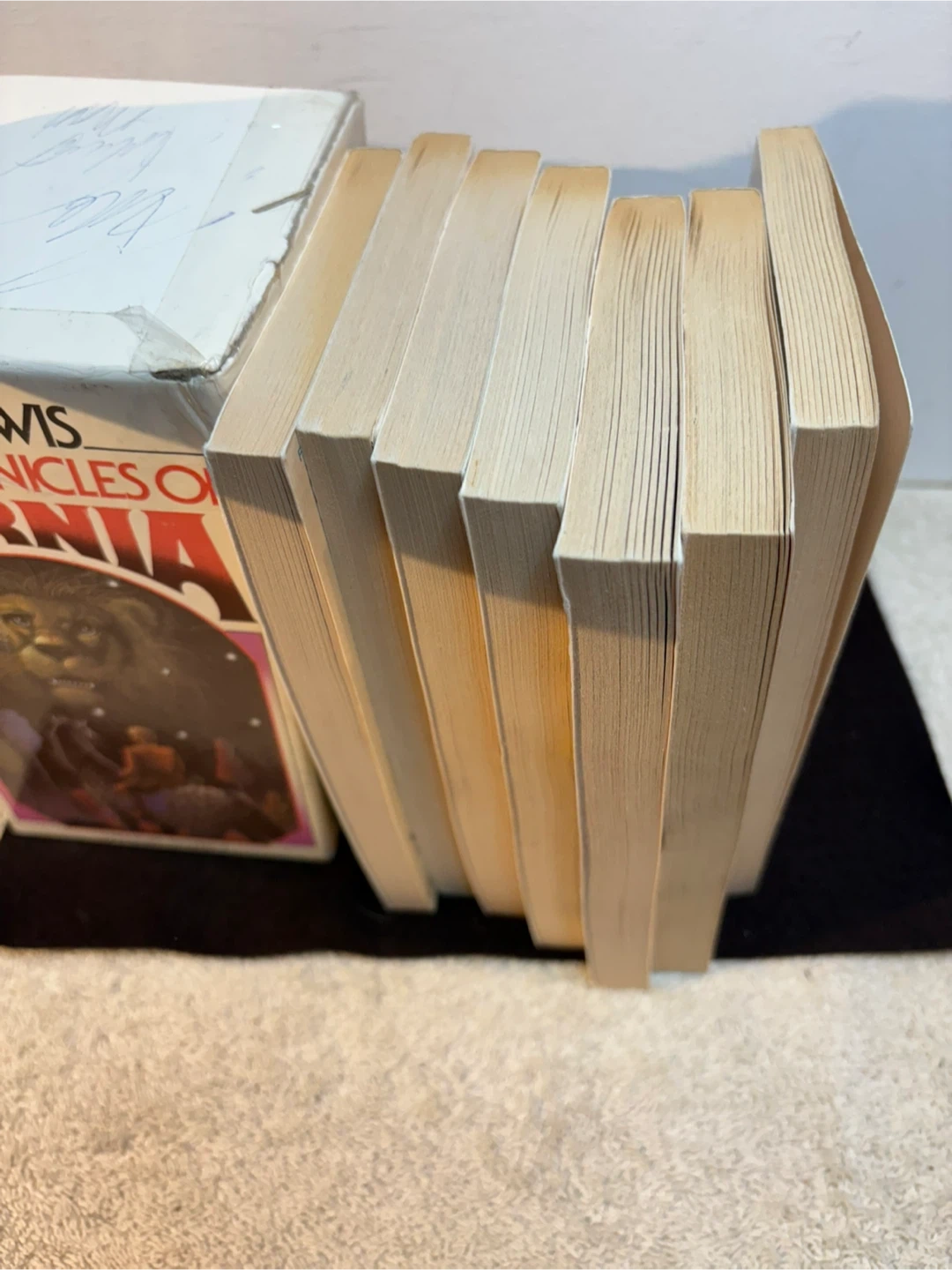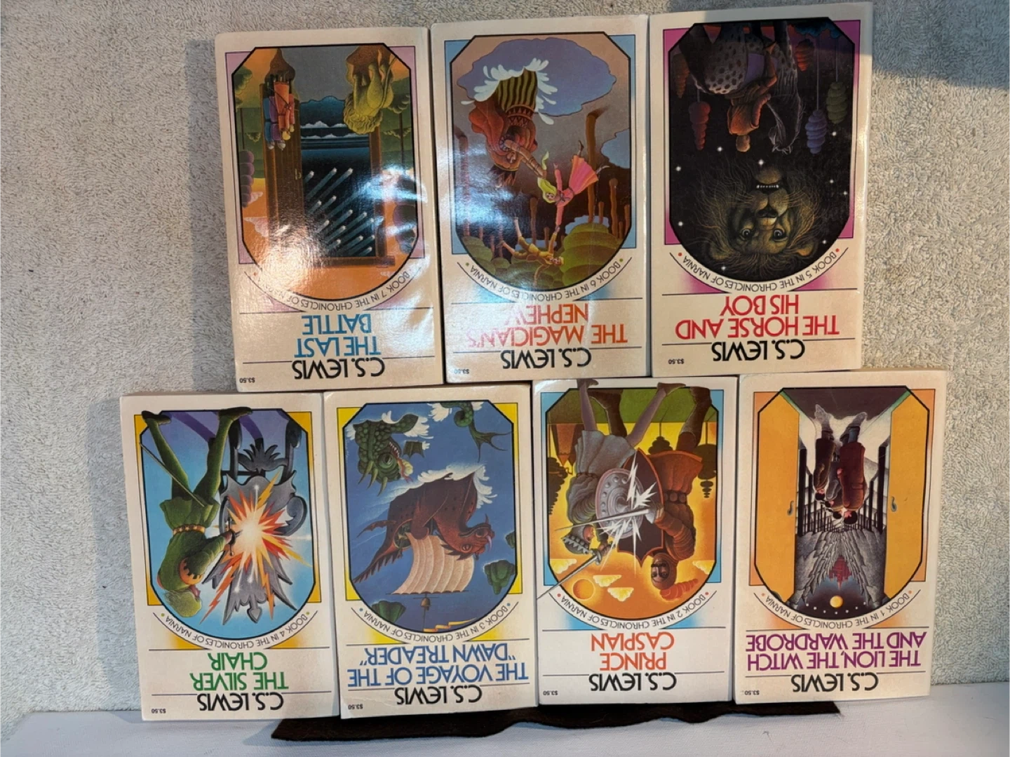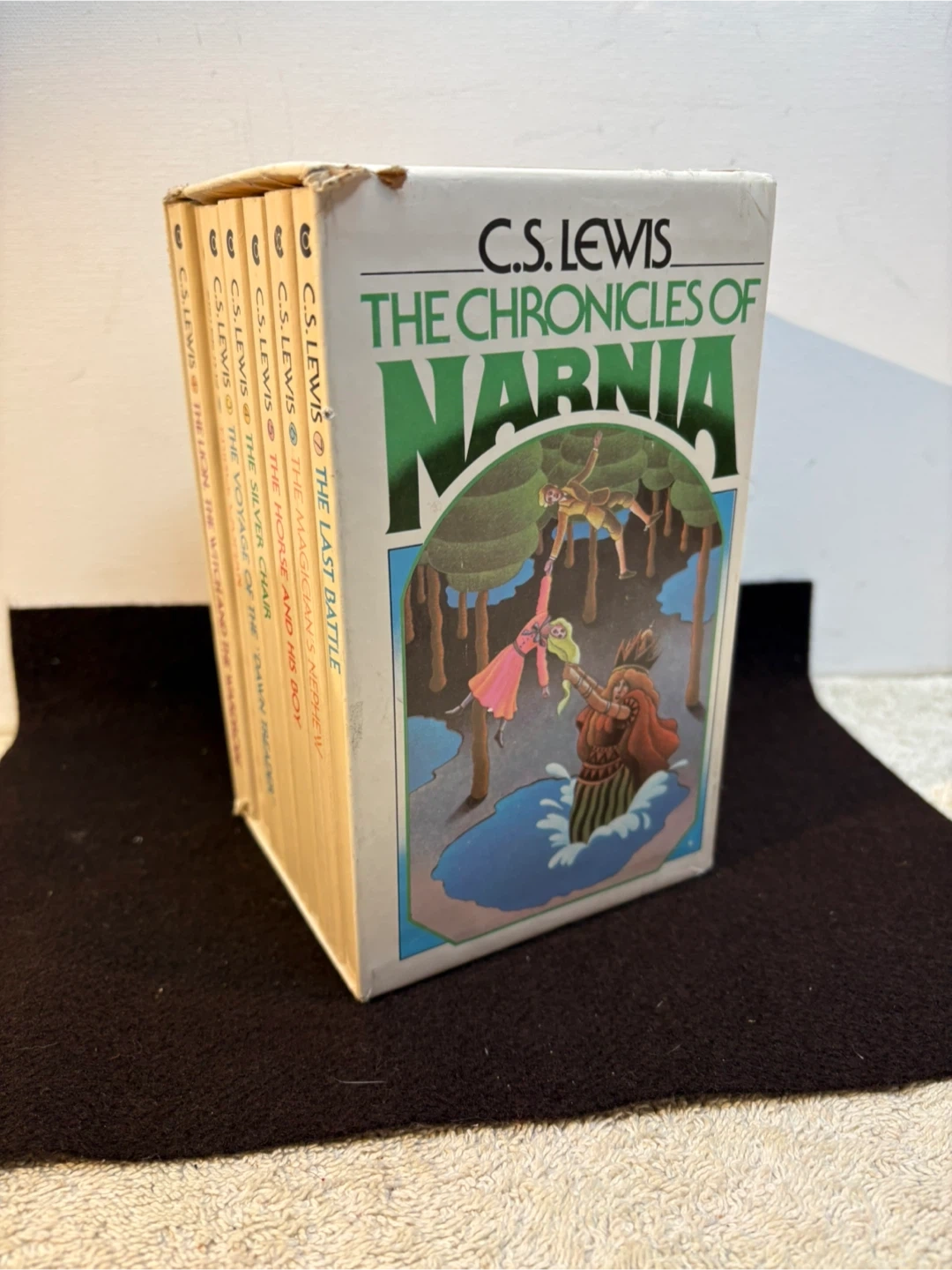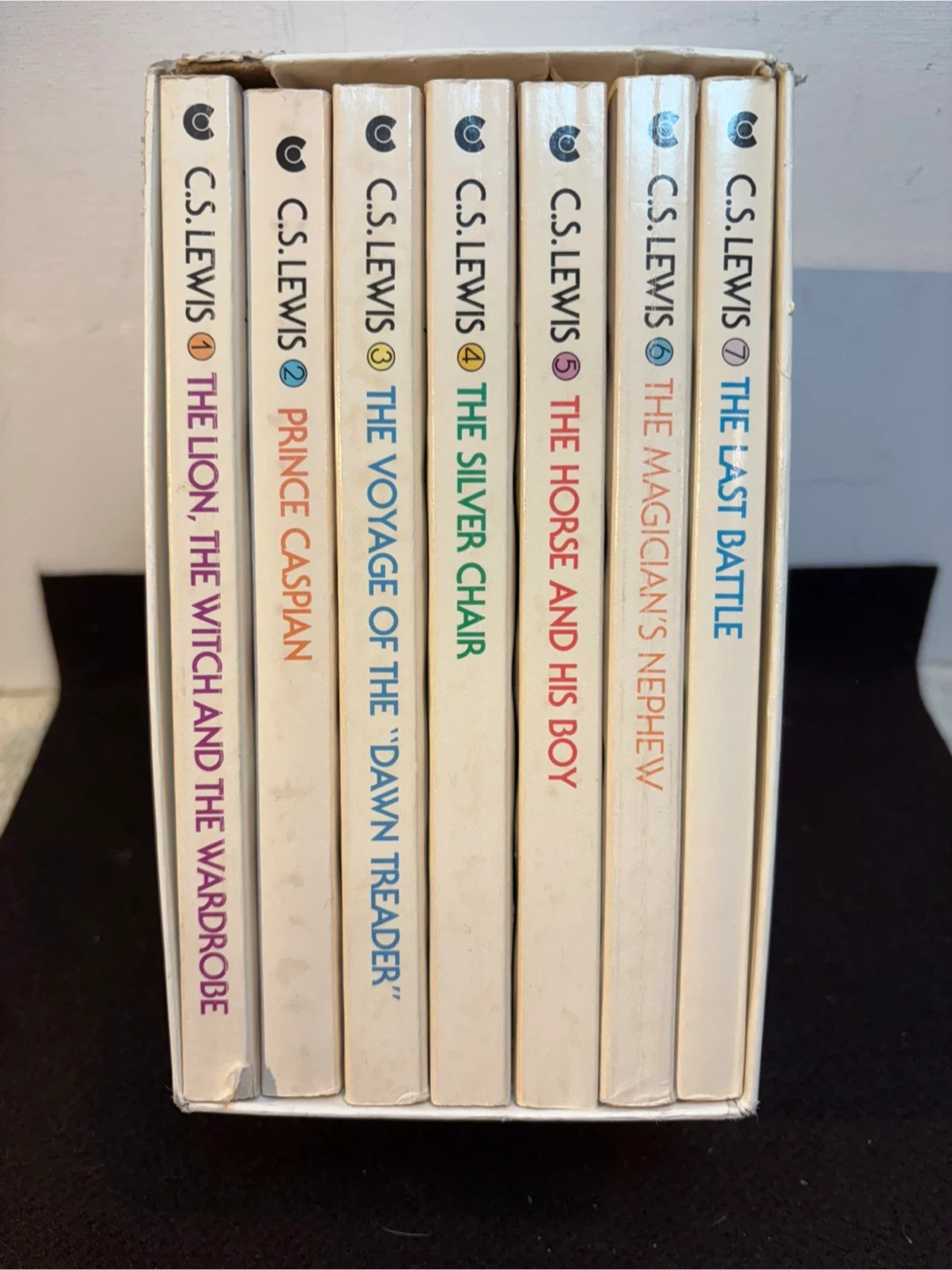 This is a 1970 vintage edition of The Classic Narnia wrong C S Lewis . This is the 7 book paperback set . Box has some issues, books are in good/great shape . Play co up st vital .