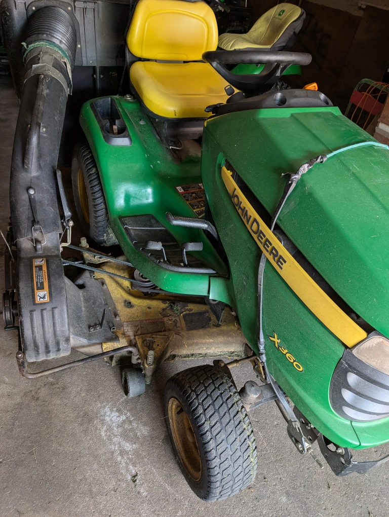 Selling John Deere x360 with Bagger system well maintained serviced twice a year. High hours 950 but runs like a deer. Runs and cuts great. Message or text 519-551-2385. Will deliver. $4200 Firm but will consider a reasonable offer. Fall will be here soon leaves be falling perfect machine for picking up leaves in fall. Perfect fall cleanup machine. Fresh oil changed and blades sharppened Aug 8. First offer $4200 it's yours. $3700 without bagger.