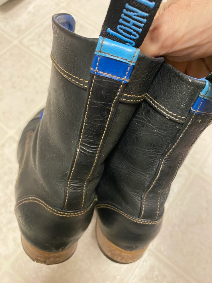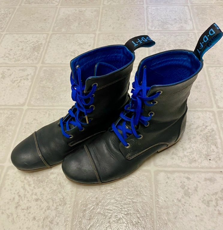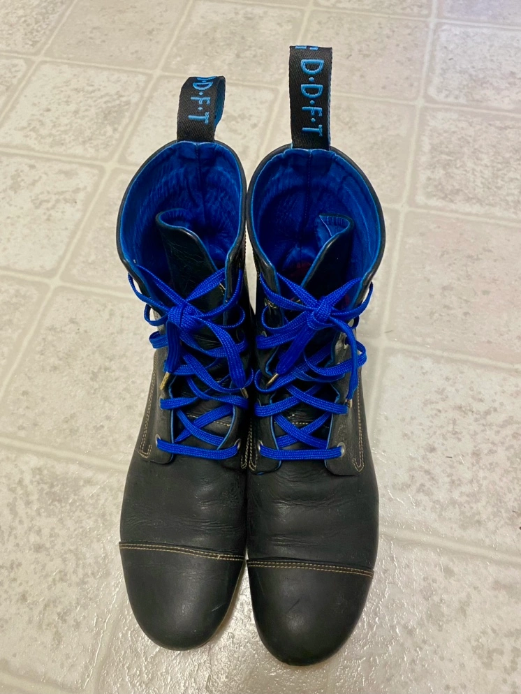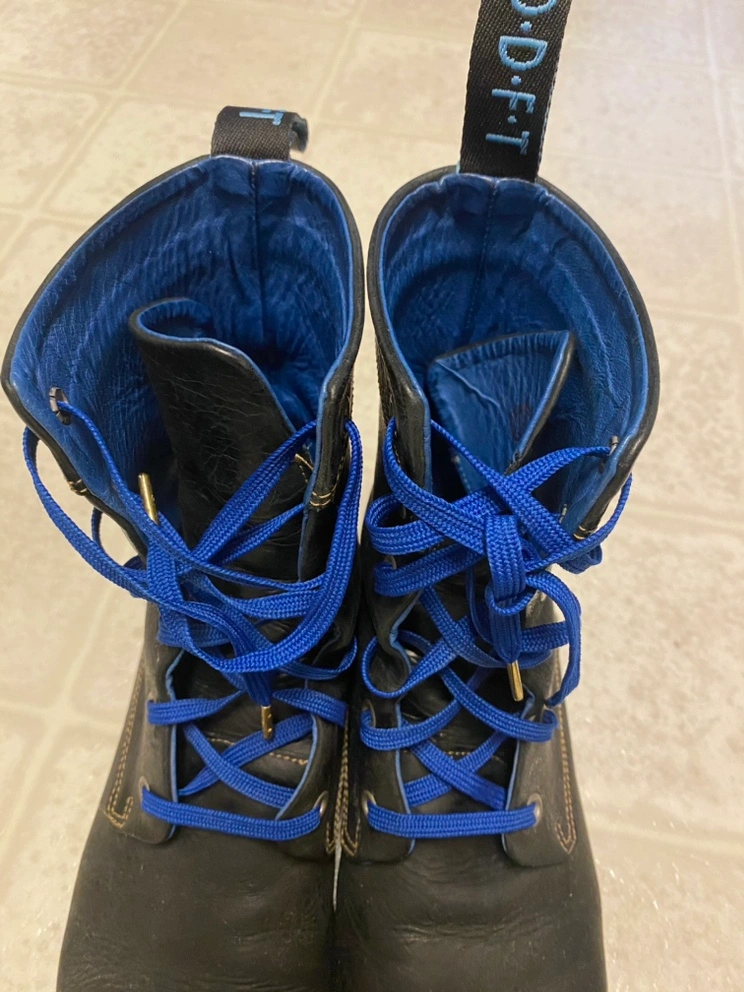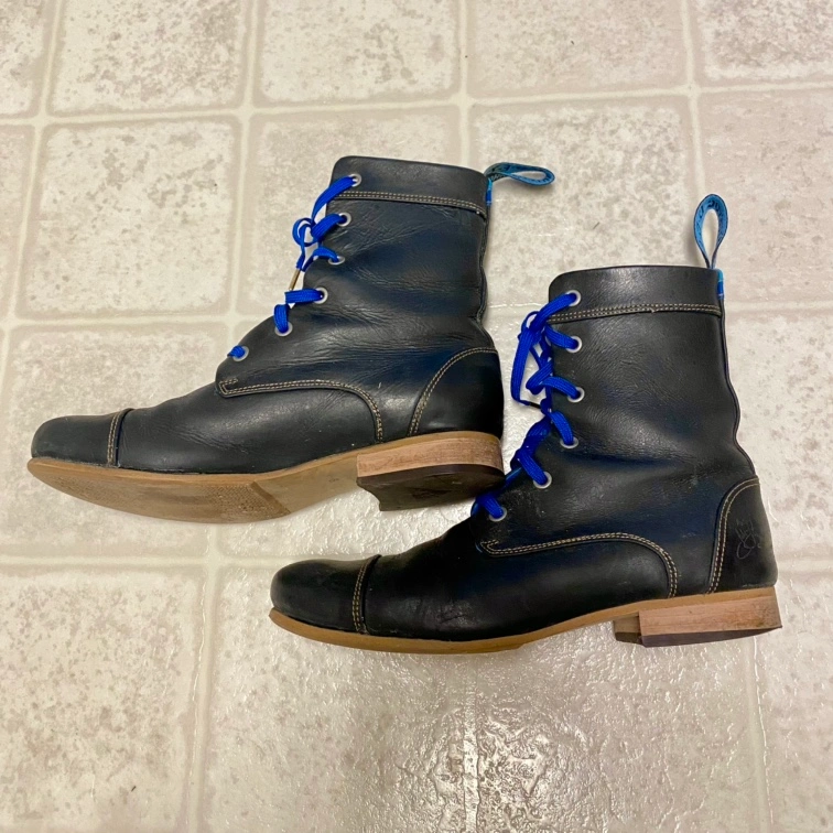 John Fluevog Black Blue Radio Boots Size 9 unisex Fluevogs though Atlas Leather with a surprise royal blue lining and 6 eye lace up BBC classic boot Condition - preloved, in good shape Pickup only Moving Sale ❌Not responding to "Hi is this available?" ❌