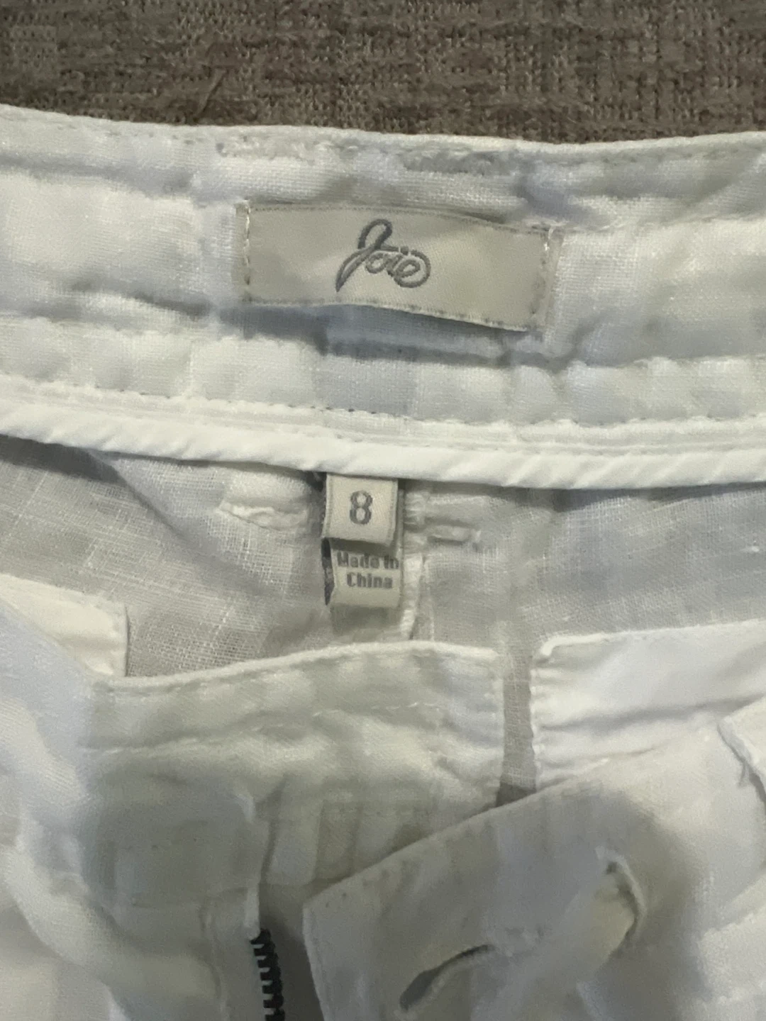 Selling a pair of Joie white shorts in size 8. They're in great condition and perfect for summer! The material feels nice and light, making them super comfy for warmer weather. They feature a drawstring waist and a classic design that goes with everything