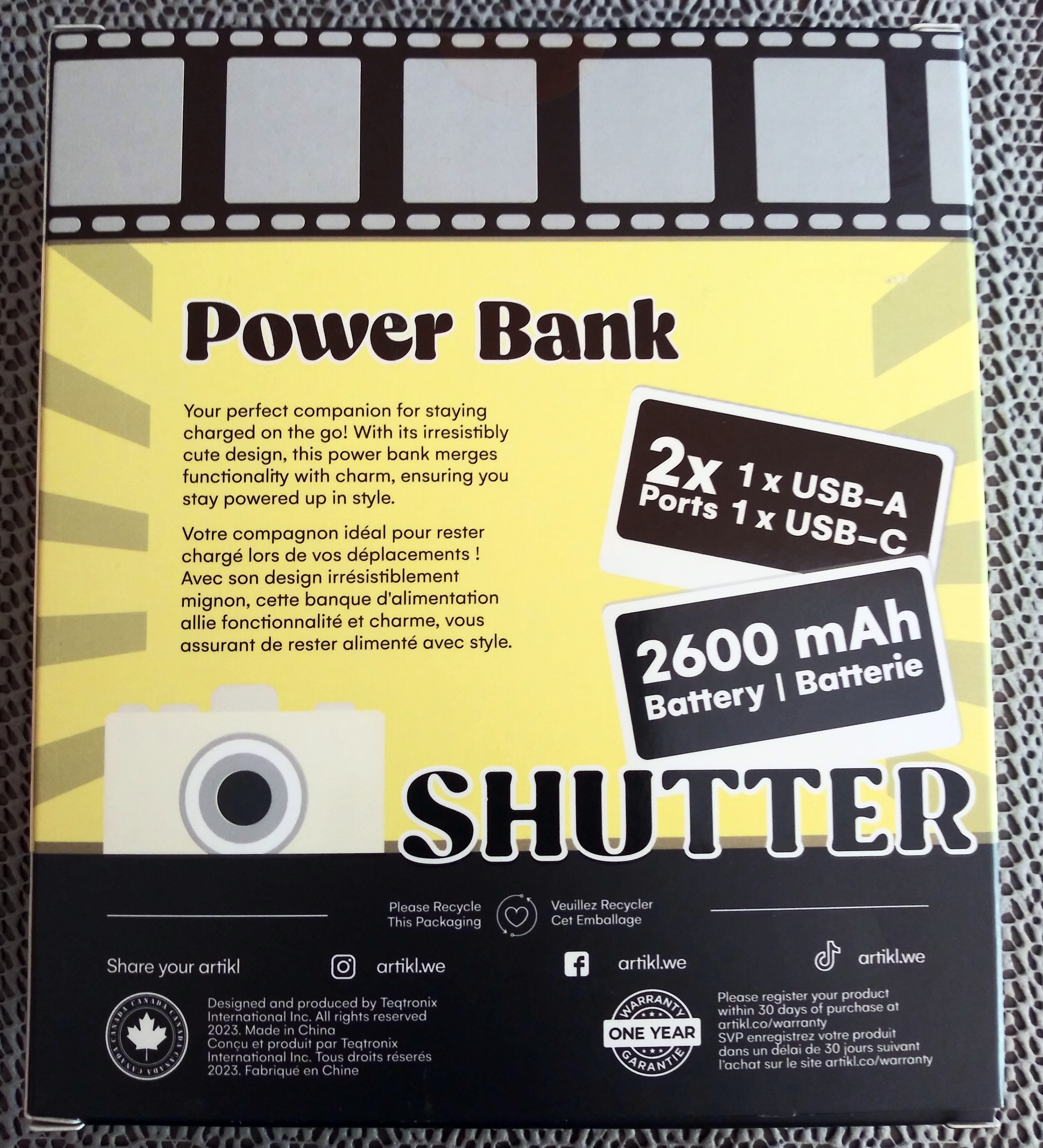 Selling a brand new Artiklo Shutter camera-shaped power bank! It's a super cute and stylish way to keep your devices charged on the go.