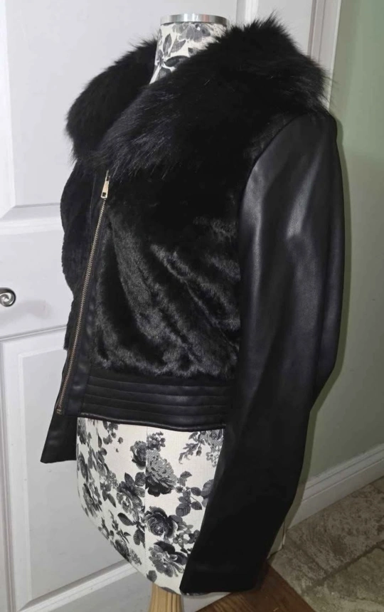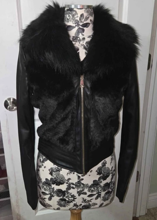 22Selling a stylish JOLIBEL black jacket! It features faux fur and leather accents, giving it a unique and fashionable look. It's a size 6. Originally bought for $269.99