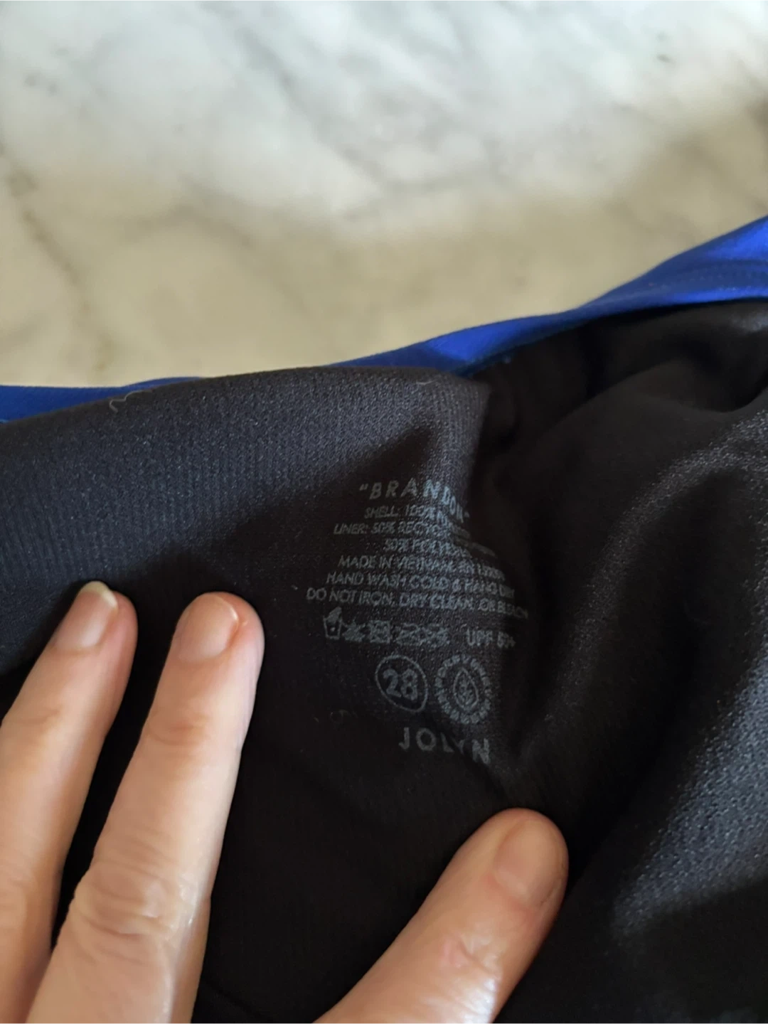 1000+Selling a Jolyn Brandon swimsuit in size 28. It's a vibrant blue colour, perfect for training or competition. The shell is 100% nylon and the liner is 50% recycled polyester and 50% polyester.