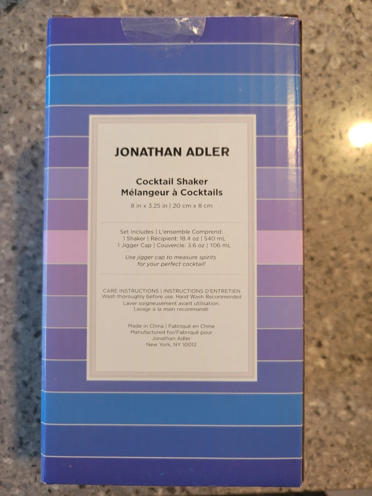 302Unused shaker with a lovely gradient design. Included is the lid. A good use for the item could be creating a delicious drink at the end of a long day.
