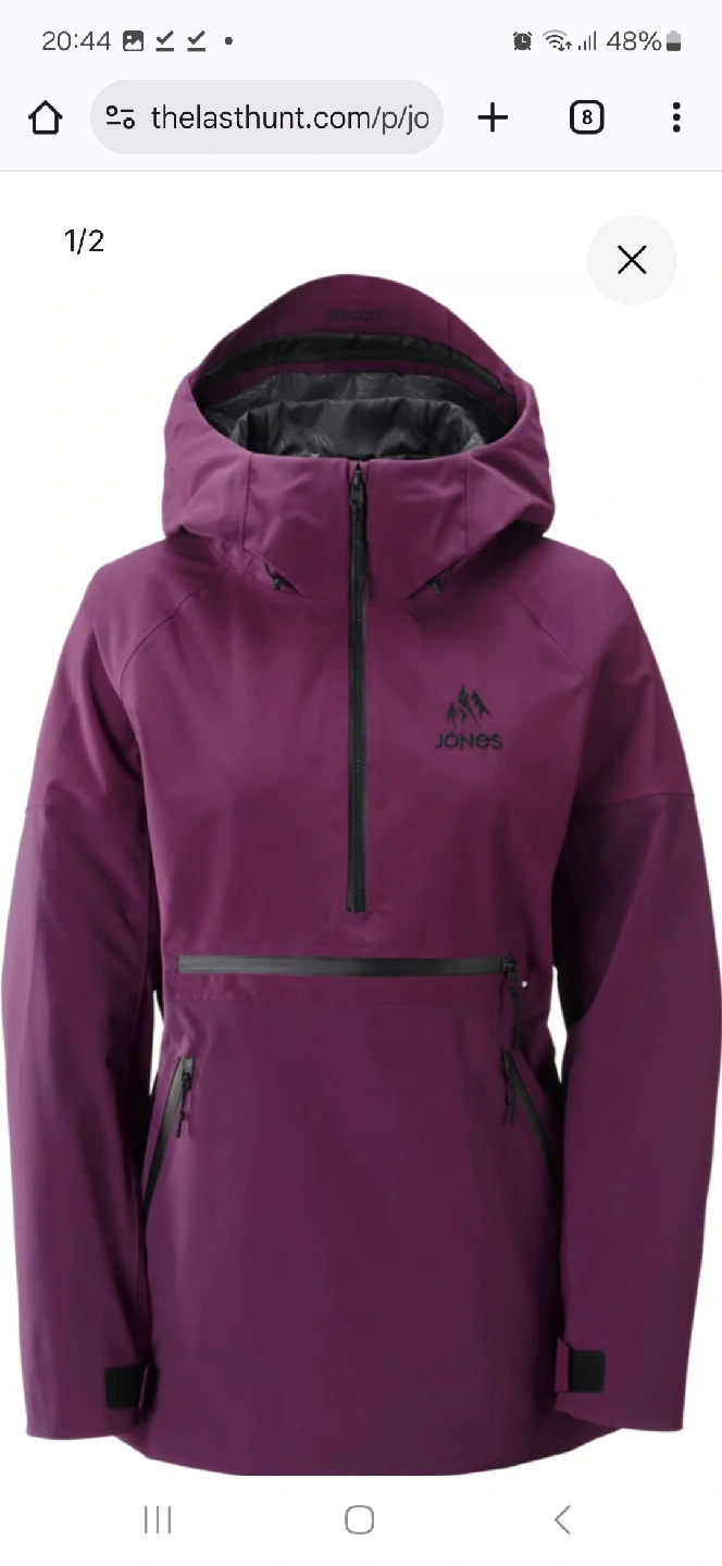 10Jones Women's Small MTN Surf Recycled Anorak 2025 in a lovely deep purple colour! Originally listed for $575 brand new with tags selling for $350 The MTN Surf Anorak offers stylish high performance for shredders drawn to the unique fit and performance of a pull over. The anorak features a looser cut and a body mapped fabric layout that uses two 100% recycled 20K waterproof/20K breathable 2L fabrics. Matching comfort and performance with a modern look, the MTN Surf Anorak is ready for action in any terrain or weather condition. Features • Relaxed fit with articulated cut for dynamic movement at the resort or in the backcountry • Medium length relaxed fit for unrestricted movement and slashing dynamic turns • Best for everyday resort shredding and backcountry touring • Body mapped 20K/20K fabrics-Durable 2L ripstop on high wear areas, 2L stretch on torso • Zipped front kangaroo pocket for stashing your phone, snacks and small gear • Side zip for easy entry and pit zips for easy temperature regulation • Pockets: Two zipped hand pockets, Zipped front kangaroo pocket, Zipped internal chest pocket, Forearm pass pocket • Minimalist powder skirt • Tri-pull adjustable helmet compatible hood • Ykk AquaGuard® zippers • Ykk Natulon® recycled zippers • Fully taped seams • Adjustable waist with cord locks • Recco equipped • Zipped armpit vents • Velcro adjustable cuffs • Recycled adjuster and zip pull cords • Fully laminated hydrophilic clear membrane with PFC-Free DWR • Made with bluesign® certified fabrics • Supply chain map • Oeko-Tex and/or bluesign® certified mills • Socially responsible factories • Built with recycled materials Materials • Fabric is 100% Recycled 20K waterproof 20K breathable four-way stretch two-layer laminate shell made without PFAS • Lined with 100% Recycled Polyester • 100% Recycled 75D Polyester 4-way mechanical 2-layer stretch plain and Ripstop face fabric combined
