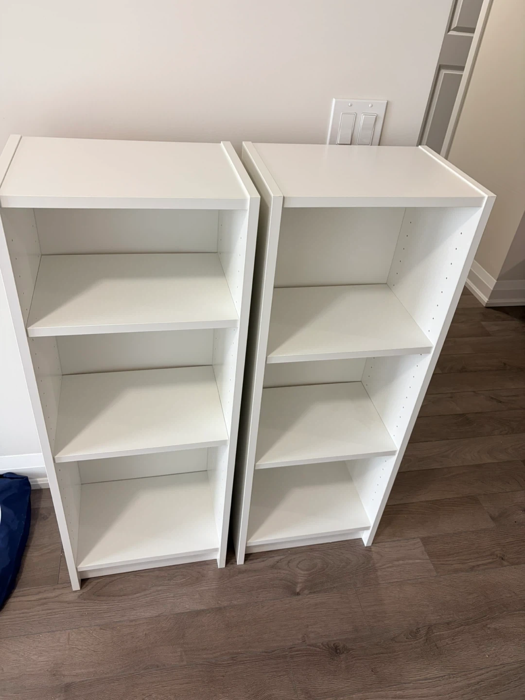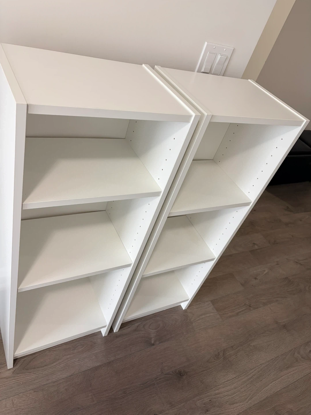 Selling two IKEA BILLY bookcases in white. Each measures 40cm wide, 28cm deep, and 106cm tall. Great for books or display or extra storage!