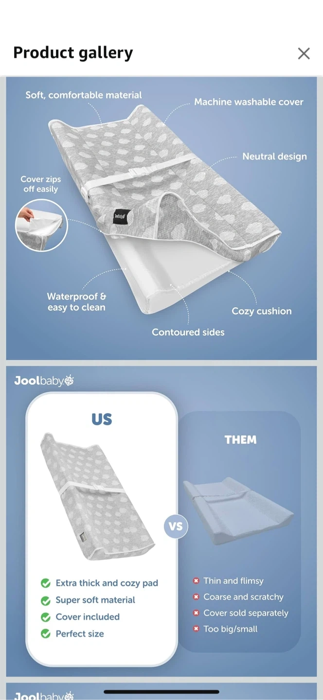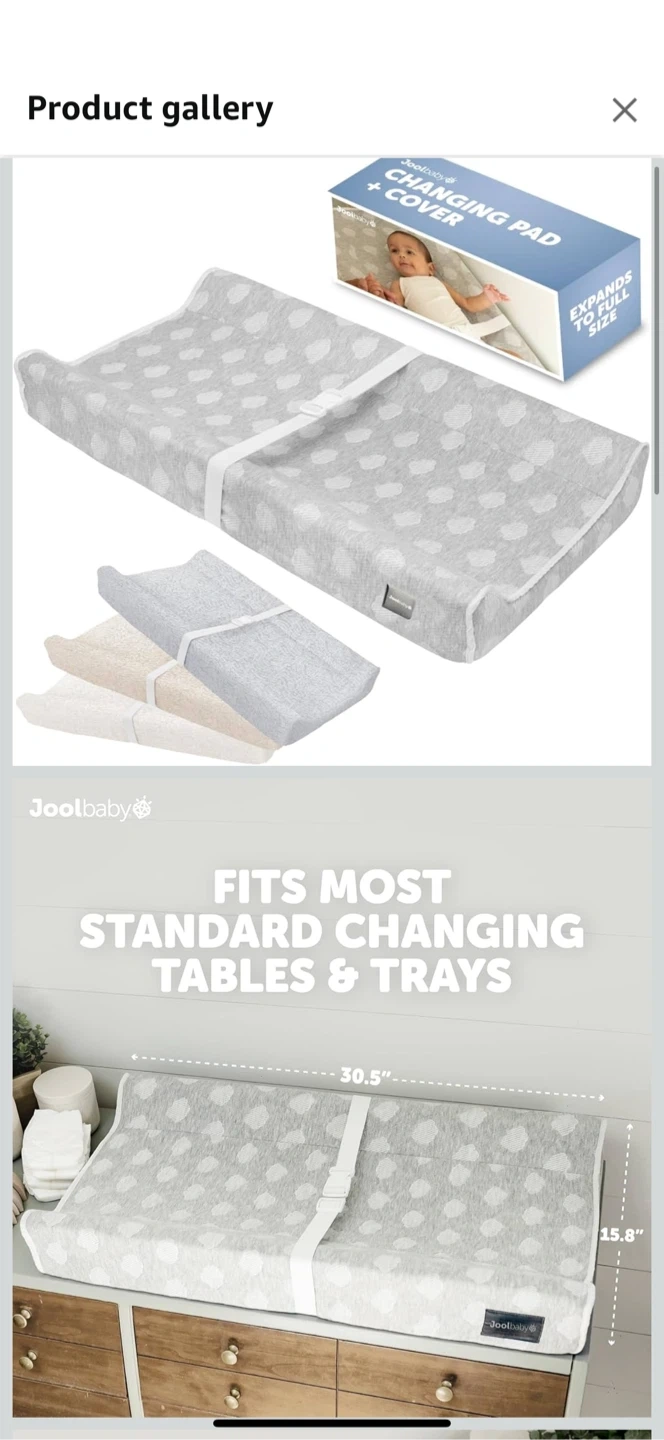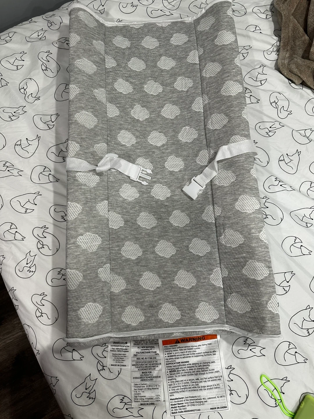 Selling an unused Jool Baby changing pad with a cover in great condition! Opened packaging to check the actual item, ended up not using it and stored in the cabinet. 100% UNUSED! It has a soft, comfortable, and machine washable cover with a neutral design. The cover zips off easily, and the pad is waterproof and easy to clean. It fits most standard changing tables and trays. Dimensions are approximately 30.5" x 15.8".