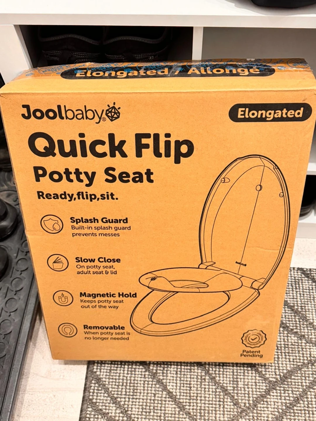 10Selling a brand new Joolbaby Quick Flip Potty Seat! It's elongated and comes in the original box. Box was opened only to check the size.