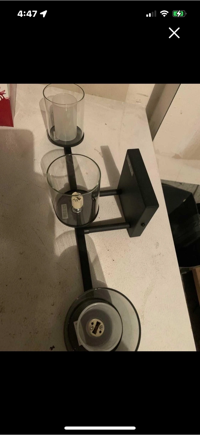 10Black light fixture. Features three glass shades. Will add a sense of peace and tranquility to your space. Missing one inner lightbulb crystal cover can or. Do without or get at homedepot new