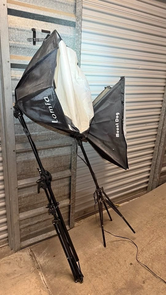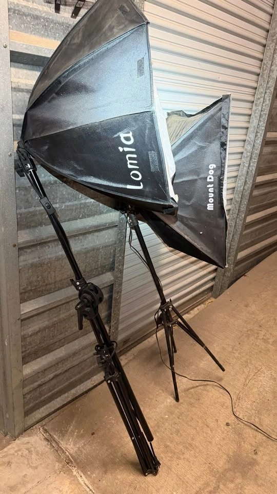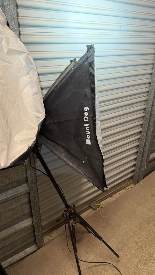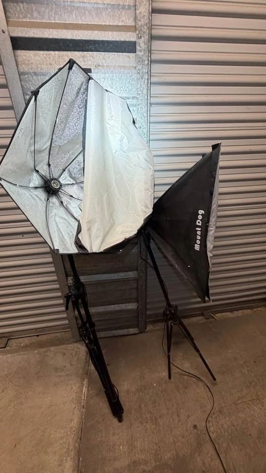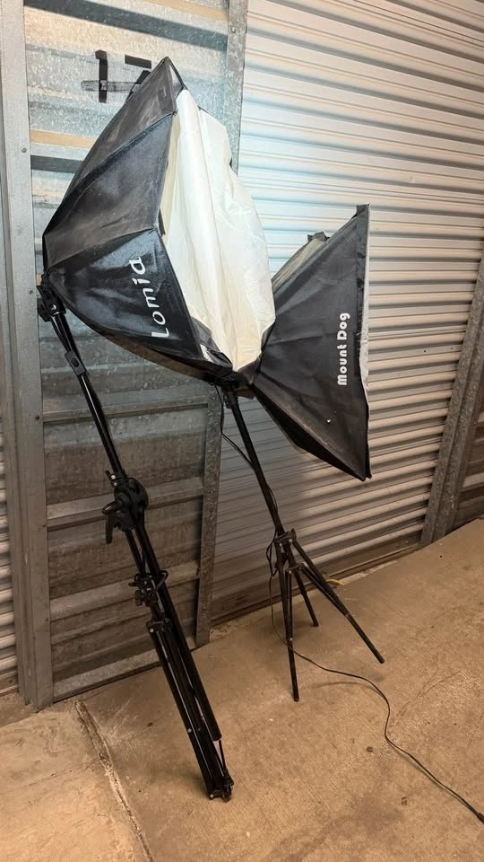 MountDog photography lighting kit with 2 softbox lights and stands. Includes large softbox light, smaller softbox light, bulbs, and both stands as shown in the photos. Good for portrait photography, product photos, video lighting, streaming, or home studio use. Pre-owned condition with normal signs of use and storage. Lights power on, as shown in the photos. Softboxes and stands show light cosmetic wear. Sold exactly as pictured.