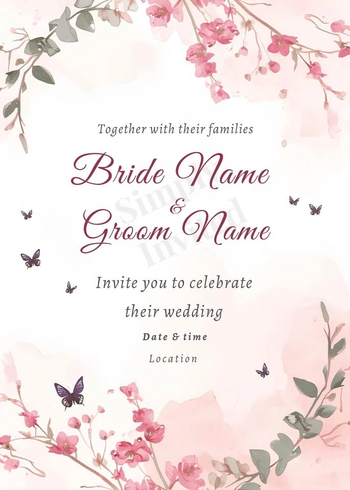 I offer fully personalized digital wedding invitations along with matching pieces such as RSVP cards, details cards, menus, and thank-you cards. Each design is custom-made to reflect your wedding style—romantic, modern, classic, or floral.