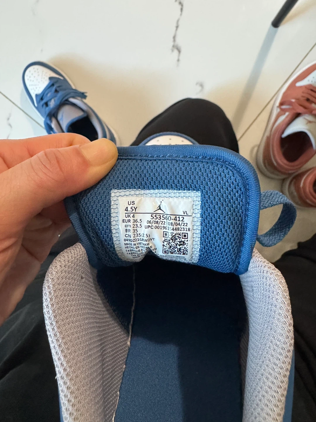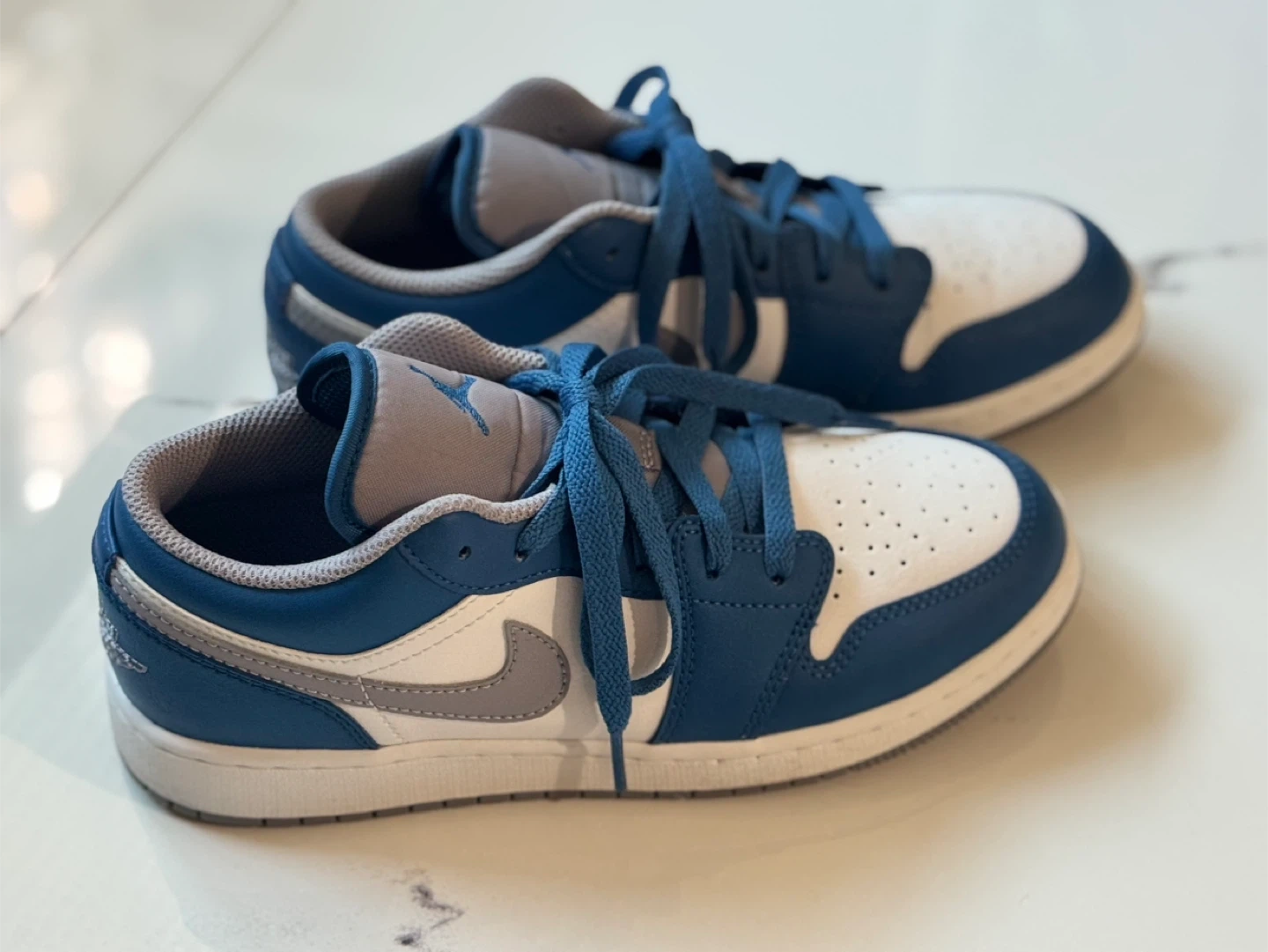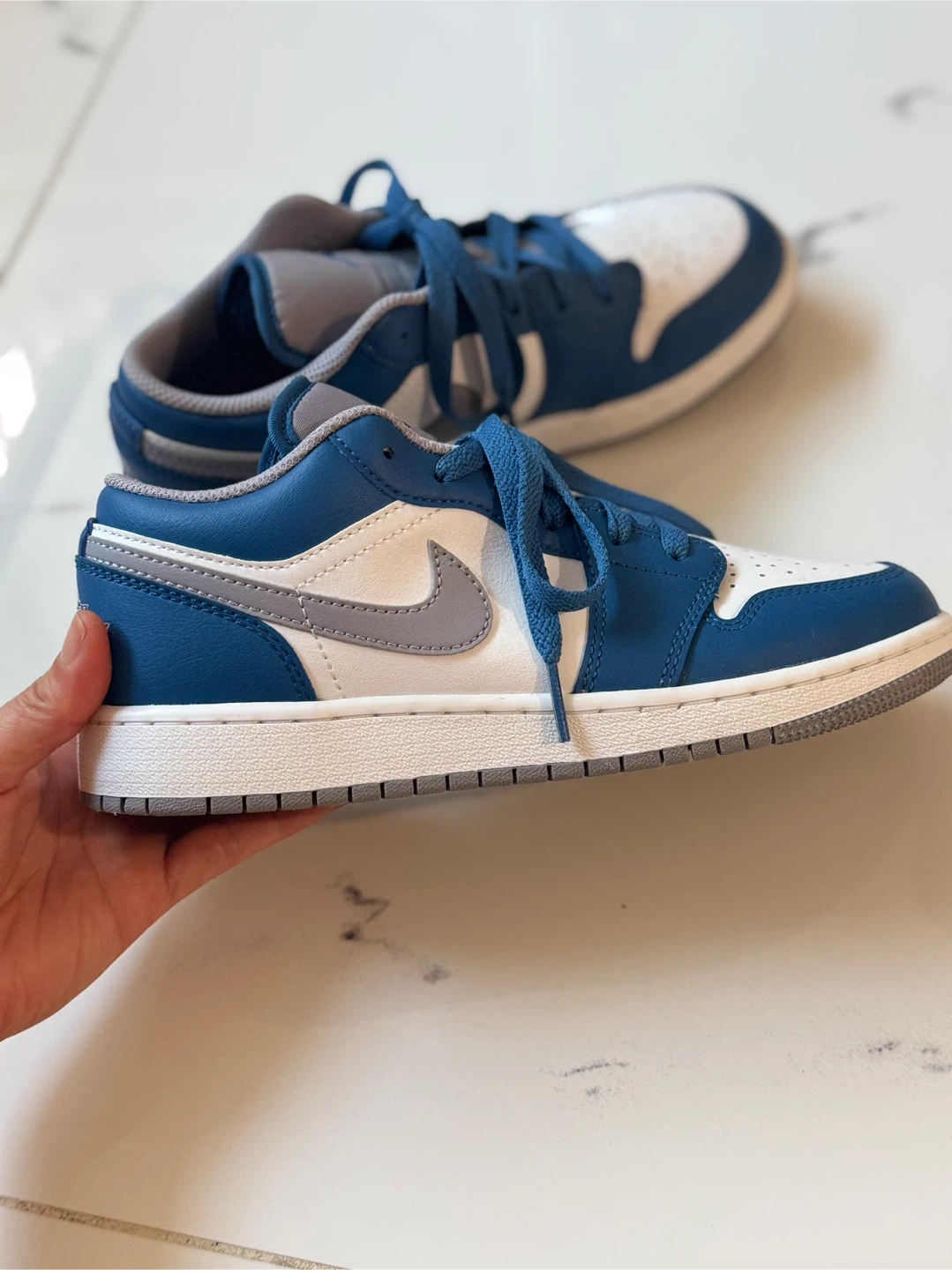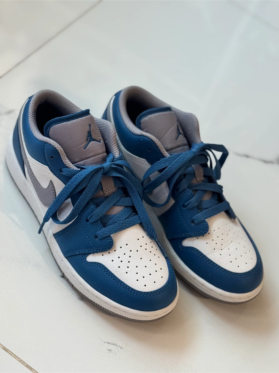 Selling a pair of Jordan 1 Lows in blue and white. They're in great shape and ready for a new home! They have orginal box!