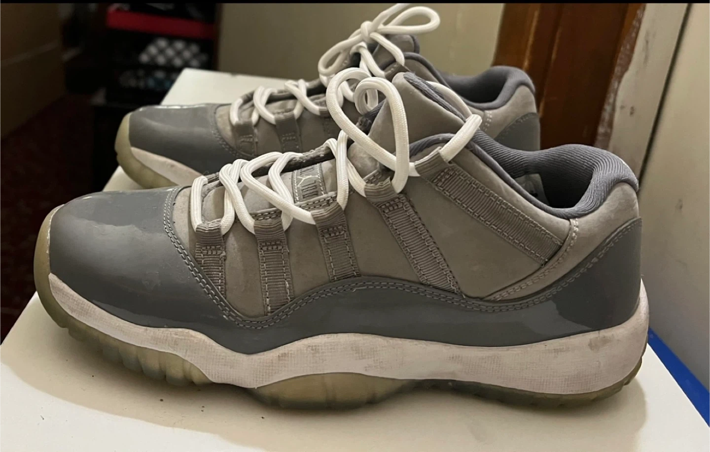 10Selling a pair of Jordan 11 Retro Cool Grey shoes in youth size 6.5. Good condition.