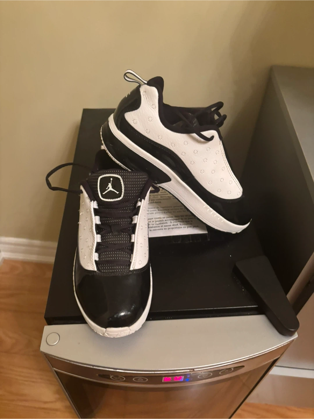 15Selling a pair of Jordan sneakers in black and white! They are a US size 1Y. Great for a little one who loves to play!
