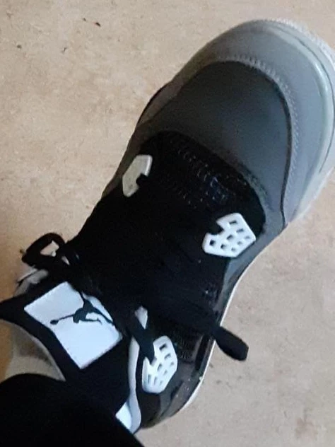 10Selling a pair of Jordan 4 Retro sneakers in black and grey. They're in good condition and ready for a new home!