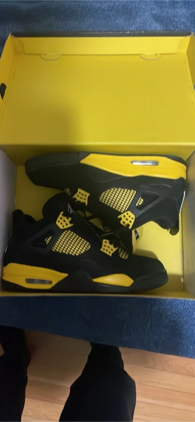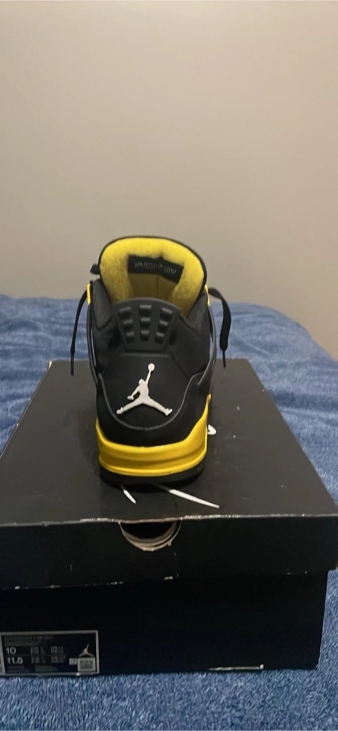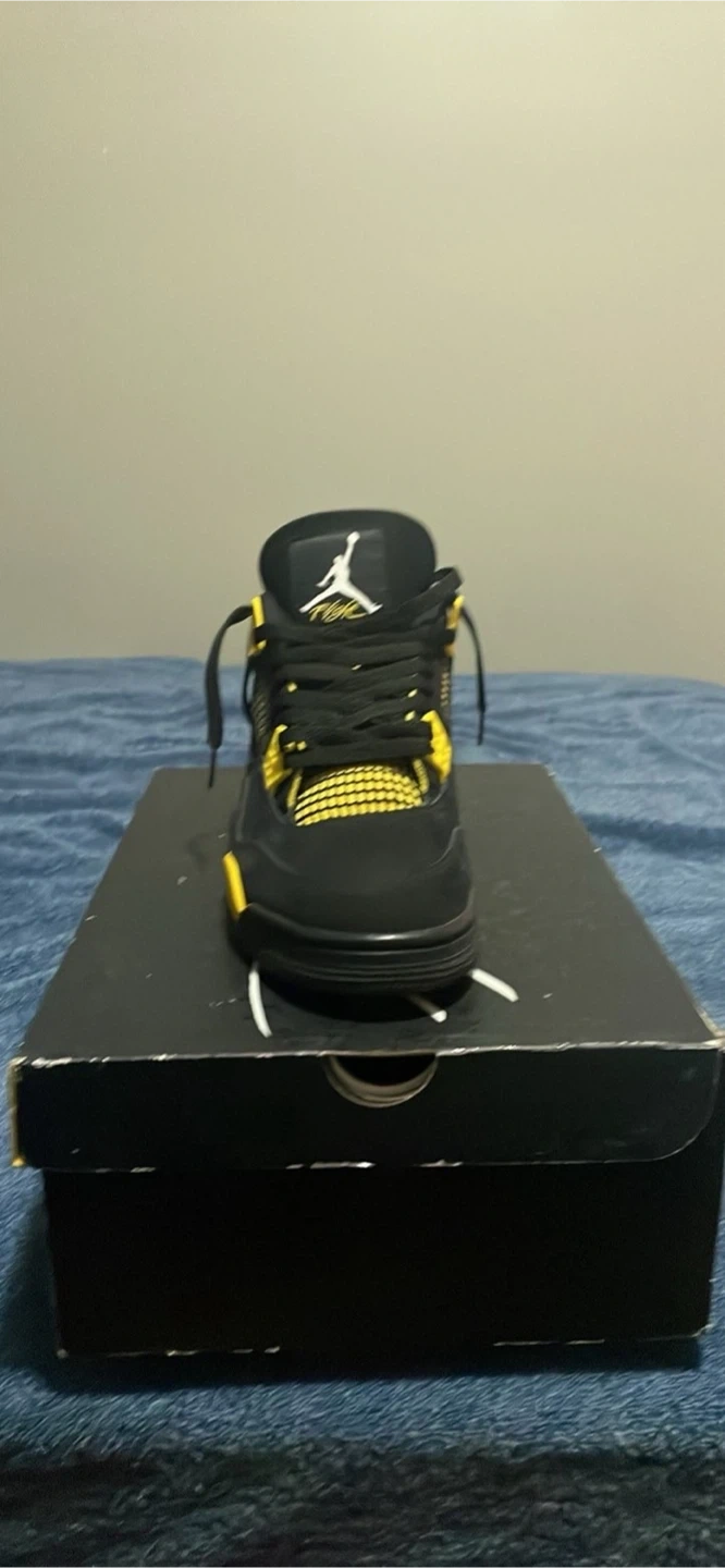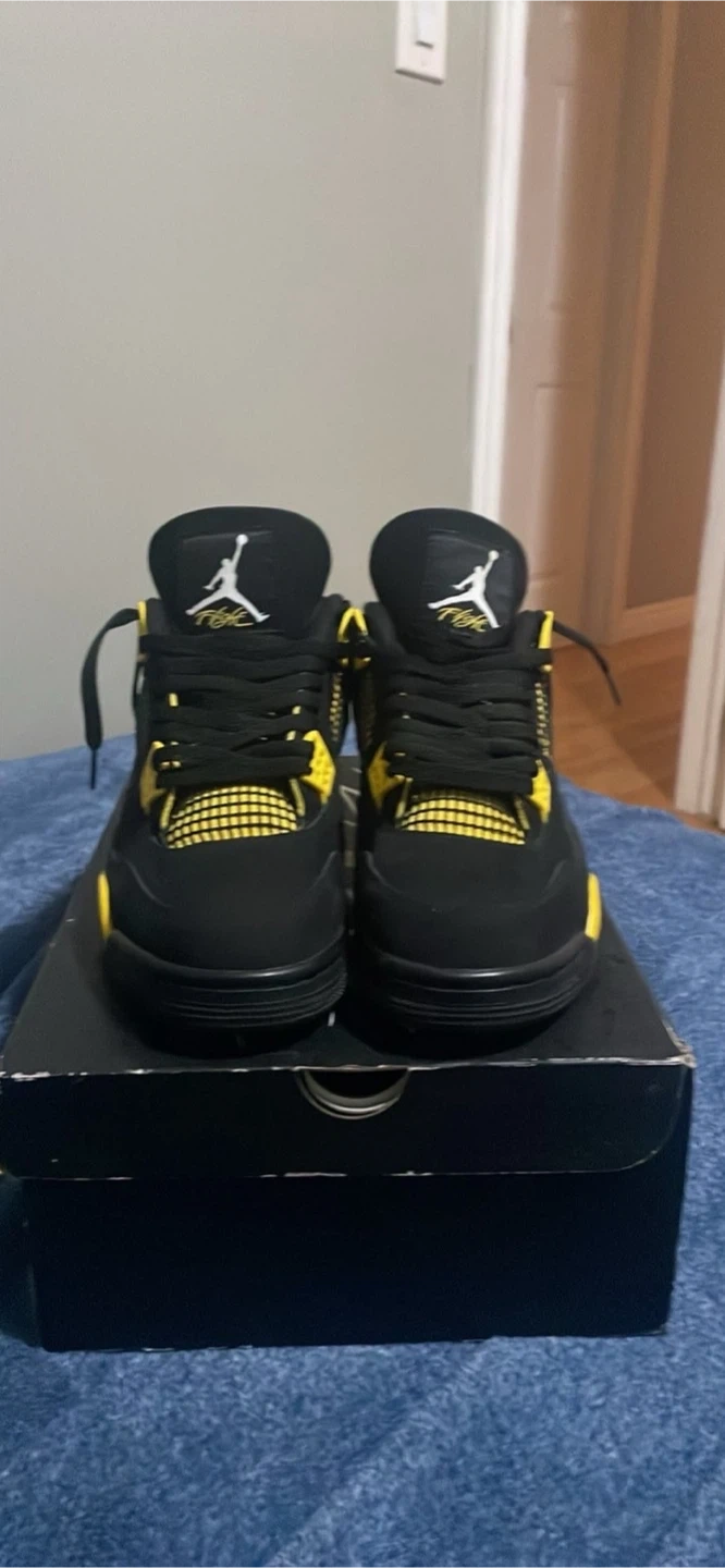 10Selling a pair of Jordan 4 Retro Black Lightning sneakers in size 10. They come with the original box and are in great condition! A stylish addition to any sneaker collection