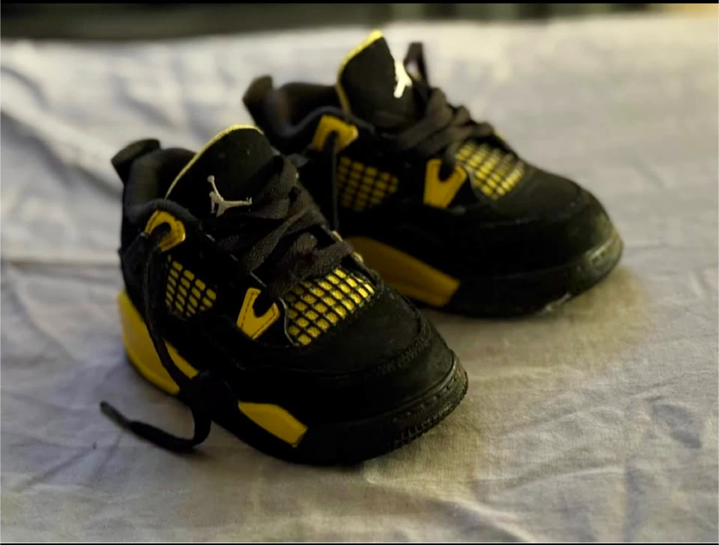 Selling a pair of toddler-sized Jordan 4 Retro sneakers in a cool black and yellow colourway! These are perfect for your little one to step out in style. They're in great condition and ready for a new home