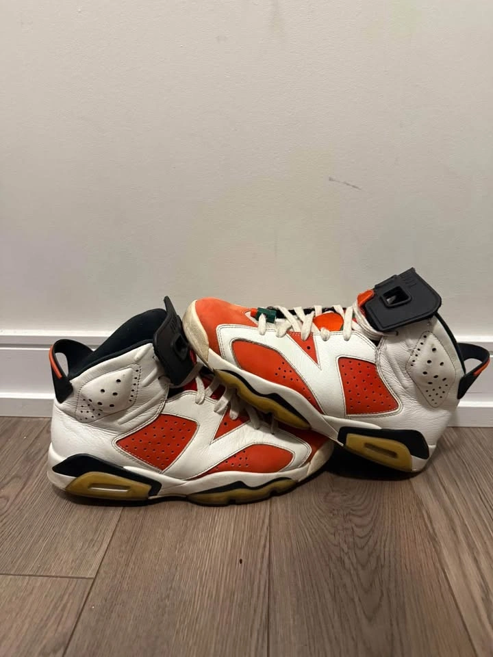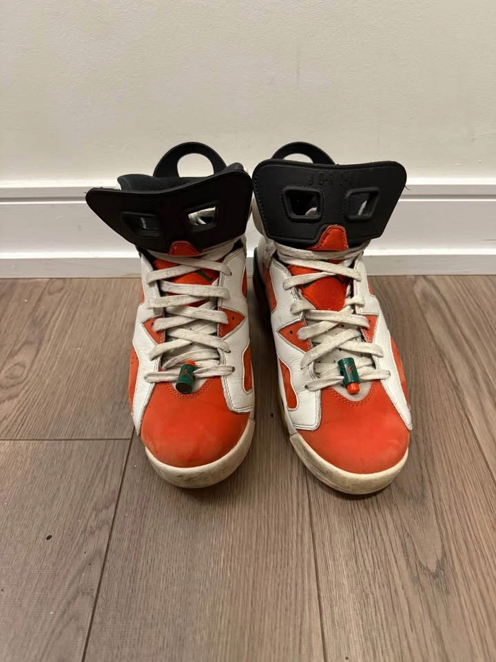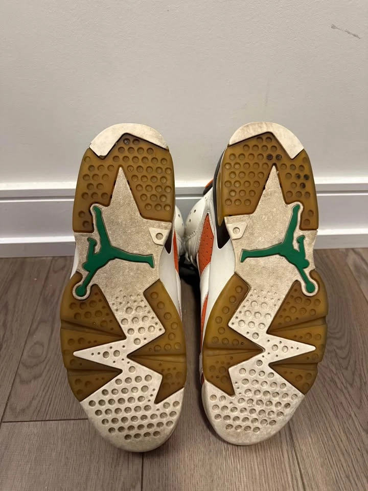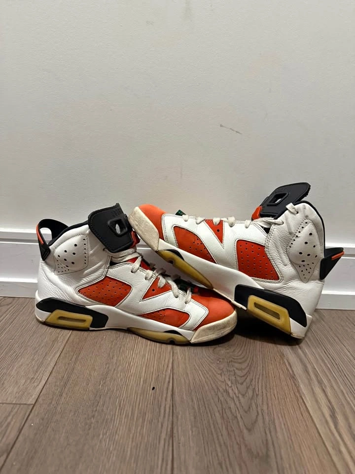 Jordan 6 Gatorades in good condition for their age. Some scratches in the leather and only one spot on the nubuck with a stain. Overall good condition. Size 9.5. Pick up Kipling and Dundas