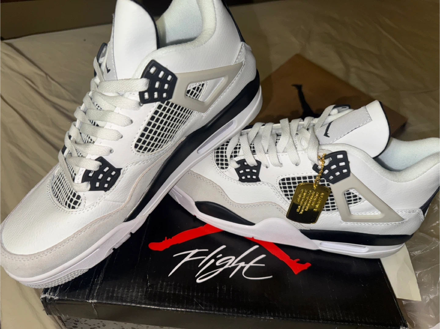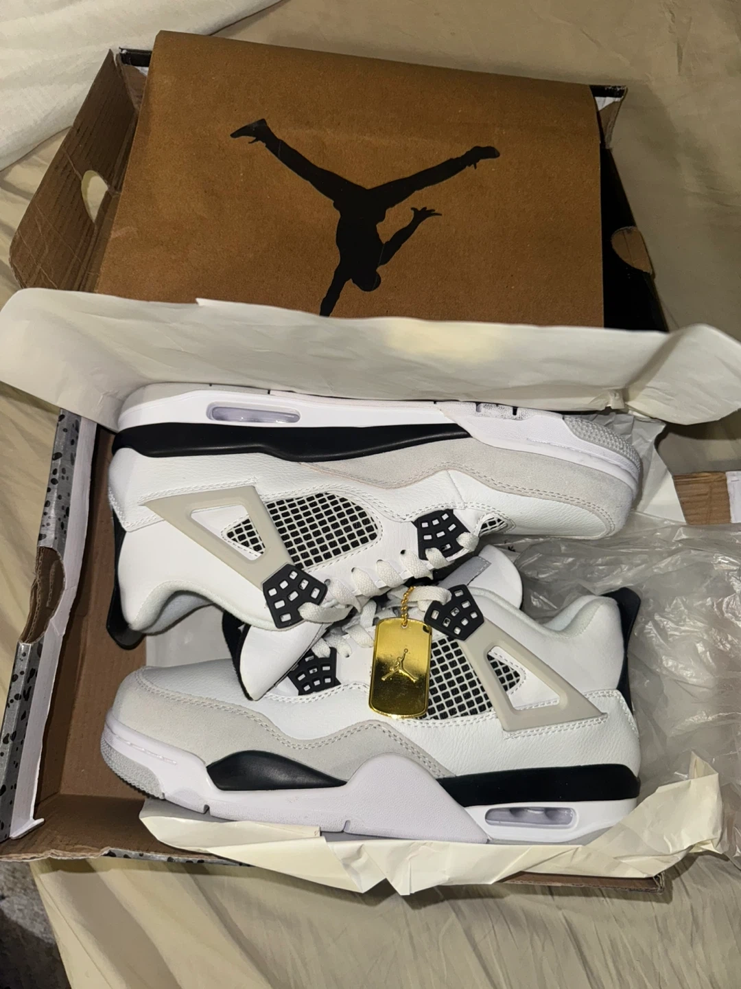 73Selling a pair of Jordan Air 4 Retro military black.. They are a size 9.5 US. Comes with the original box! Untouched. Price firm.