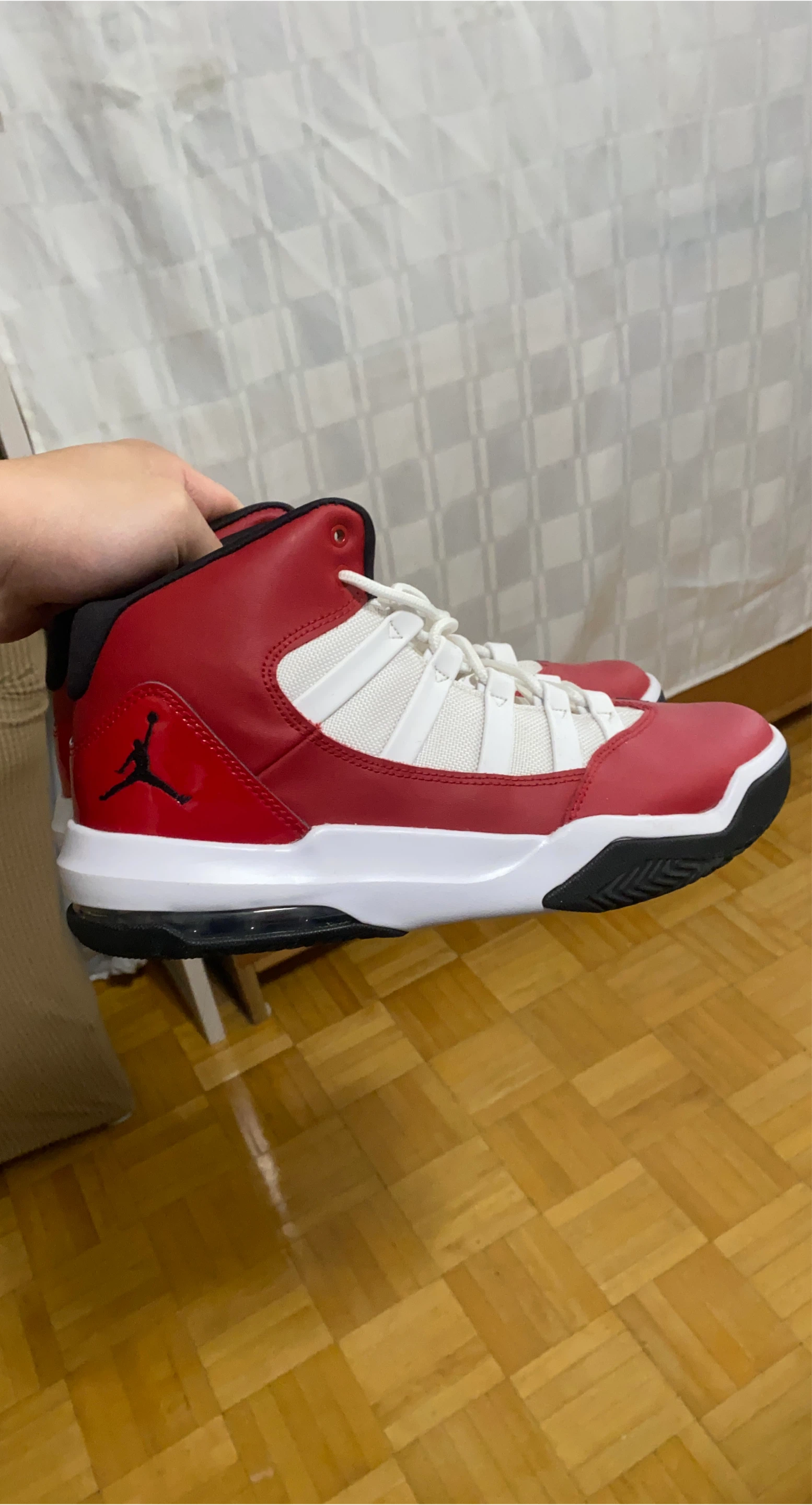 65Selling a pair of Jordan Max Aura 4 sneakers in red and white. They're in great shape and ready for a new home! Size 10