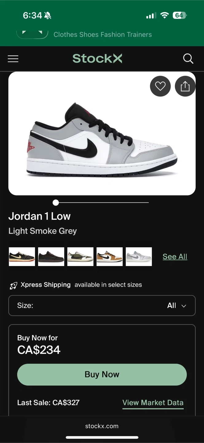 15Lightly worn Jordan one low light smoke gray selling for $130, on StockX for $230