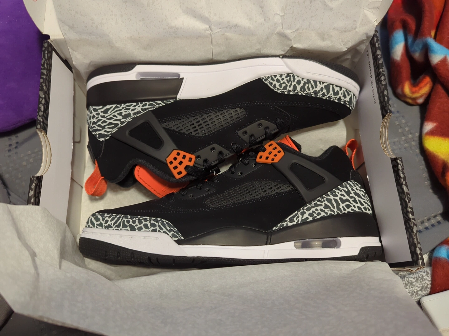 Selling a pair of Jordan Spizike shoes in the Black Cement colourway! They come with the original box. These shoes feature a cool design with the iconic Jumpman logo. If you're a sneakerhead or just looking for a stylish pair of kicks, these are a great choice price is firm no trades