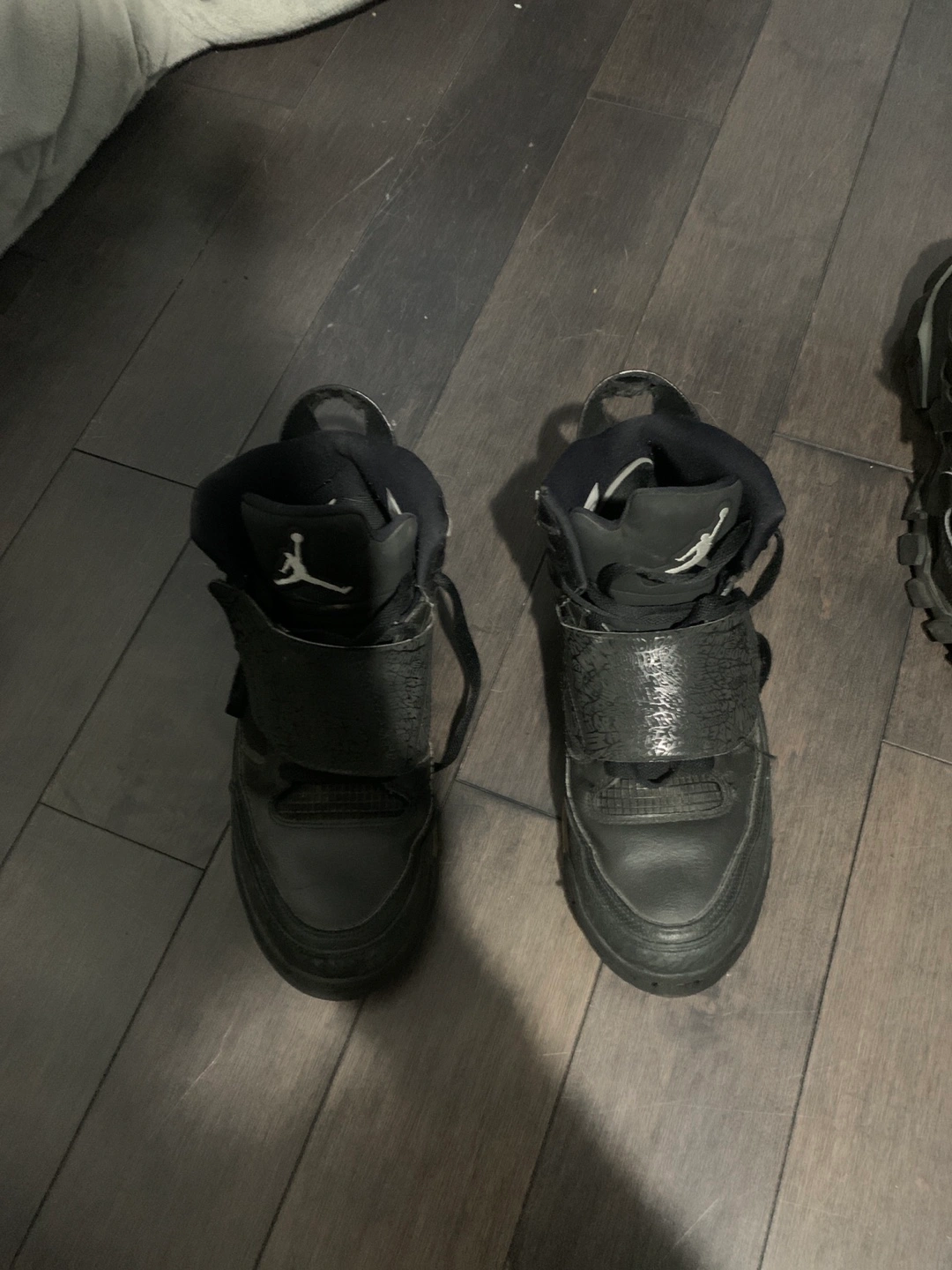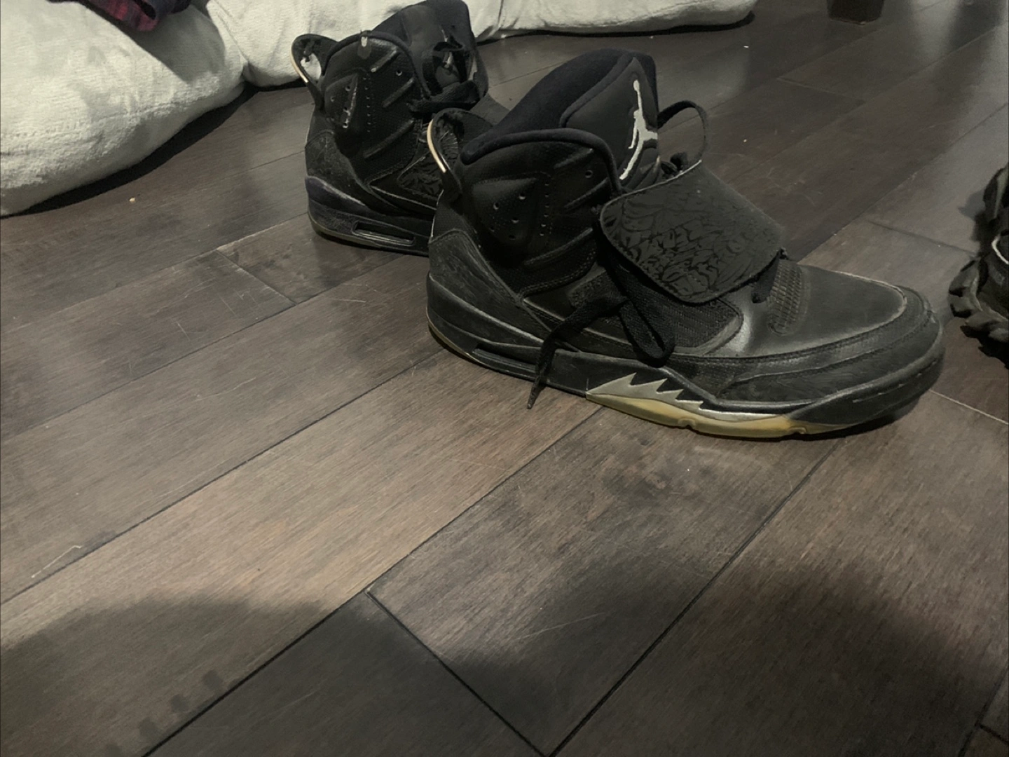 Selling a pair of black Jordan Spizike sneakers. They're in good condition and ready for a new home! Size is not visible, please refer to the pictures