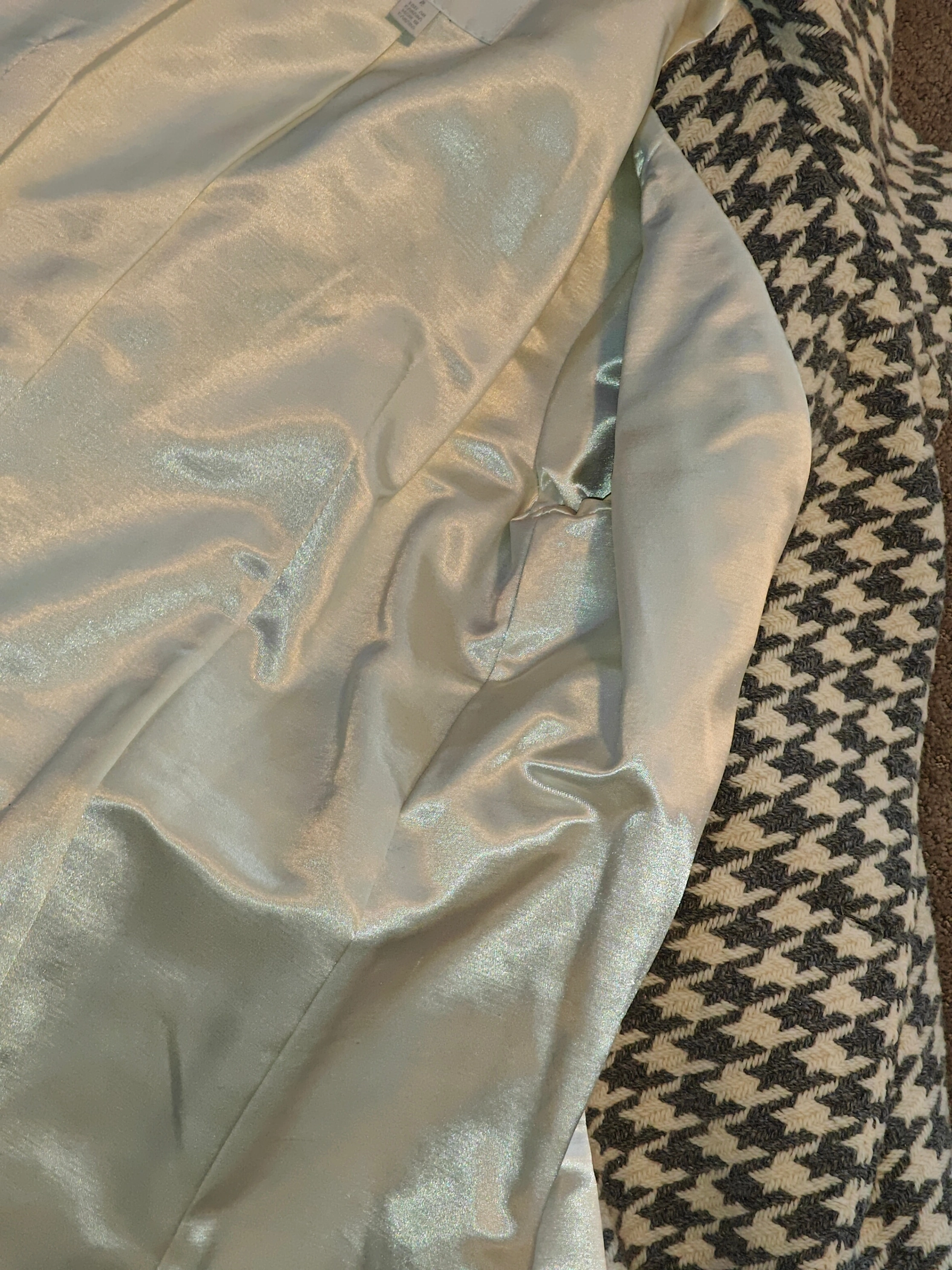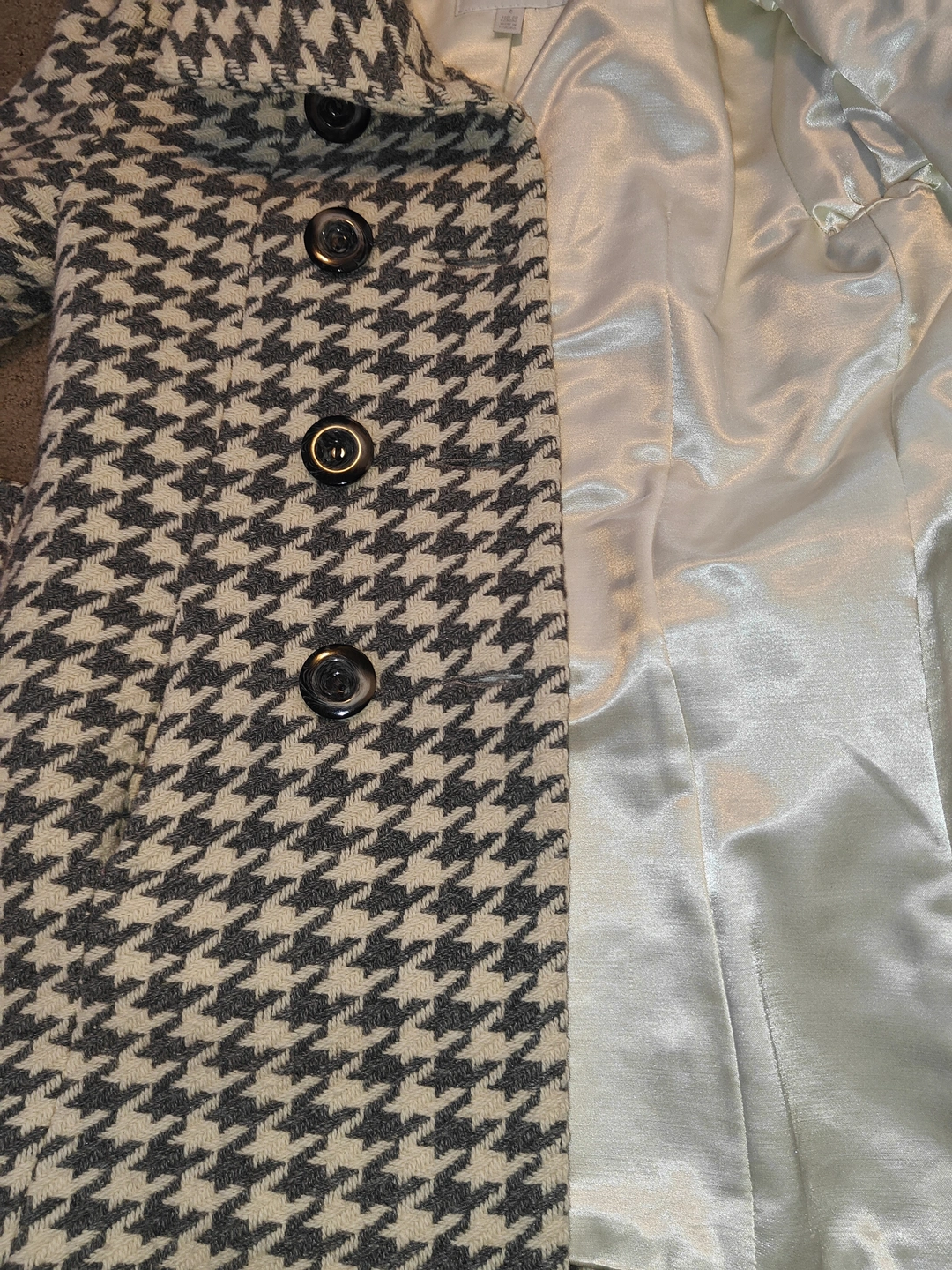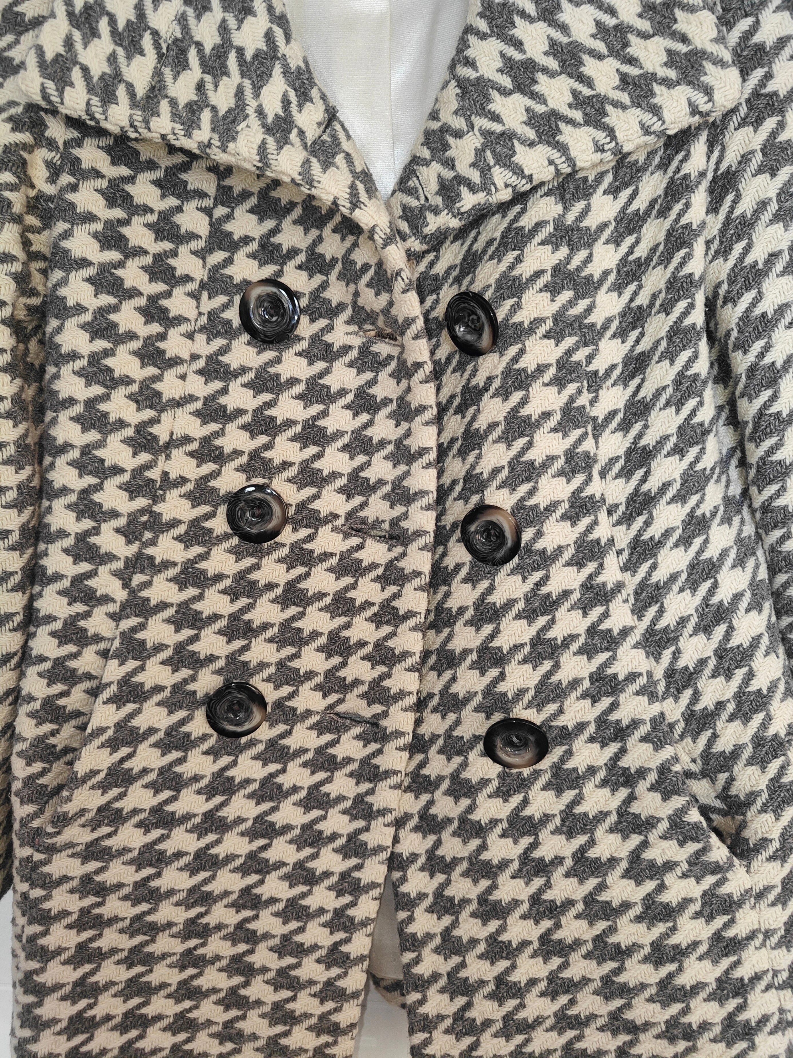 I am selling a JOSEF Wool Houndstooth - Womens Woman Ladies Winter Pea Coat Jacket Front Double Breasted Button in used, excellent condition. No rips, tears, or stains. Only worn a few times. Paid $550. Embrace the colder seasons in timeless style with this elegant peacoat from JOSEF. Made in Canada with exceptional quality and craftsmanship, this jacket is a statement piece that combines classic design with cozy warmth. This striking peacoat features a sophisticated houndstooth pattern in a classic black and white (or dark gray and off-white) colour palette, making it a versatile addition to any wardrobe. The double-breasted front with large, stylish buttons and a broad lapel collar adds a touch of vintage charm, while the slim fit silhouette offers a modern, tailored look. The jacket also comes with a matching belt that can be tied to cinch the waist, creating a flattering shape. Crafted from a substantial 80% wool and 20% polyamide blend, this coat is designed to provide excellent warmth and durability. The interior is fully lined with a smooth blend of 80% polyester and 20% cotton, ensuring comfort and easy wear over any outfit. This jacket has been worn only a few times and is in excellent, used condition. There are no rips, tears, or stains, a testament to its quality and careful use. Originally purchased for $550, this is a fantastic opportunity to own a high-end designer piece at a great price. Details: * Designer: JOSEF * Style: Peacoat / Winter Jacket * Colour: Houndstooth (Black/White or Dark Gray/Off-White) * Condition: Excellent, used a few times. * Made in: Canada * Size: 4 (Slim Fit) * Sleeve (Shoulder to Wrist): 24-1/2" * Shoulder to Shoulder: 15" * Total Length (Bottom Collar to Bottom Edge): 31" * Exterior Material: Wool 80% Polyamide 20% * Interior Material: Polyester 80% Cotton 20% * Style: F098864 Comes from a pet and smoke-free environment. Pickup in Mount Pleasant (NW Calgary)