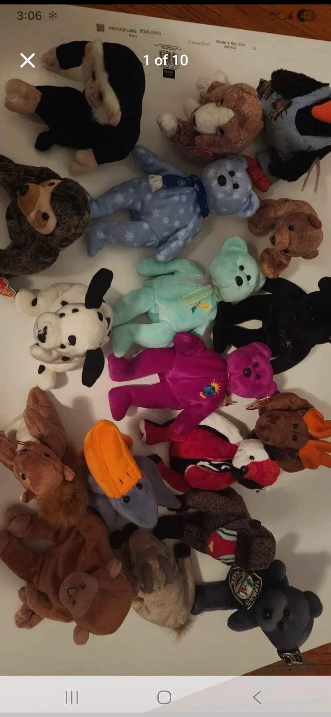 Collection of various Beanie Babies plush toys. Various animals and characters included. Great for collectors!