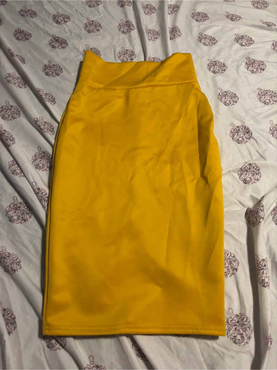 Here's a bright yellow pencil skirt from Look2LA! It's a size small and would be a great addition to your wardrobe