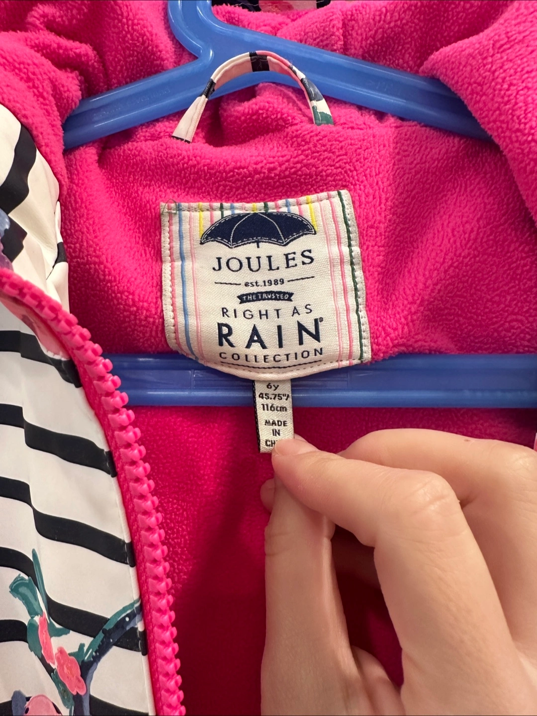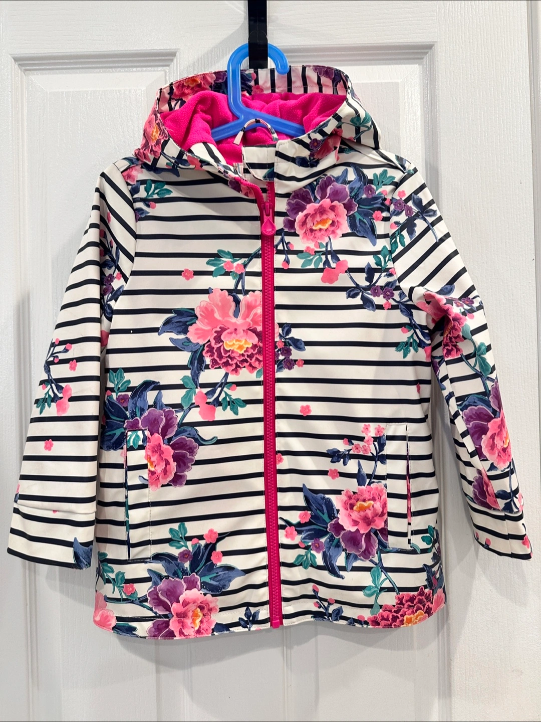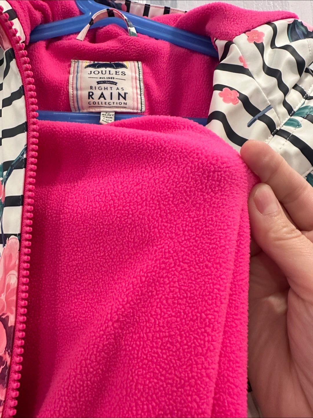 Adorable Joules rain jacket with fleece. Great for rainy days. Size 4-5 years.