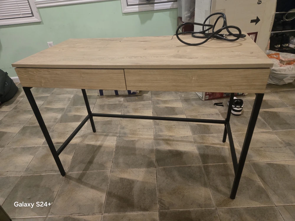 Selling a wooden desk that features drawers and a built-in power outlet. It’s perfect for a home office or study space. The desk appears to be in good condition and ready for a new home!