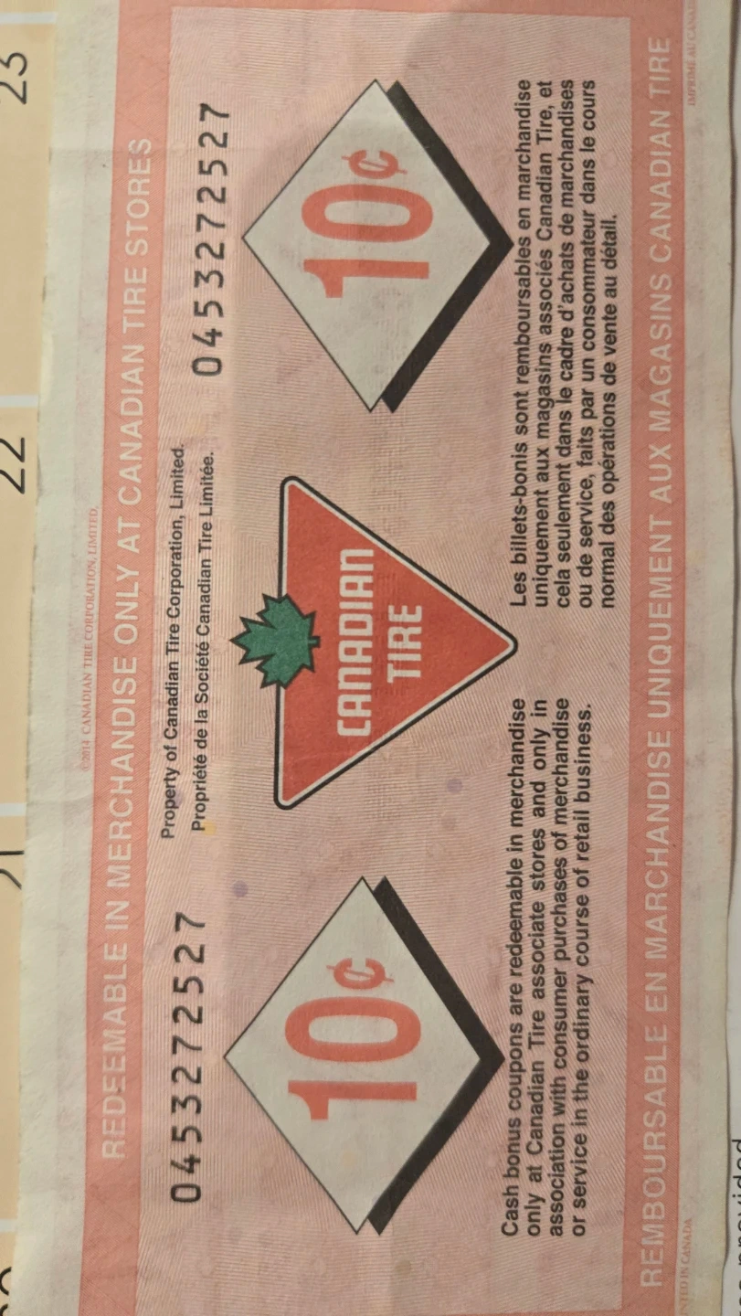 Canadian Tire 10 Cent Cash Bonus Bill