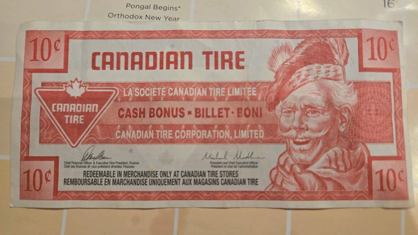 Canadian Tire 10 Cent Cash Bonus Bill