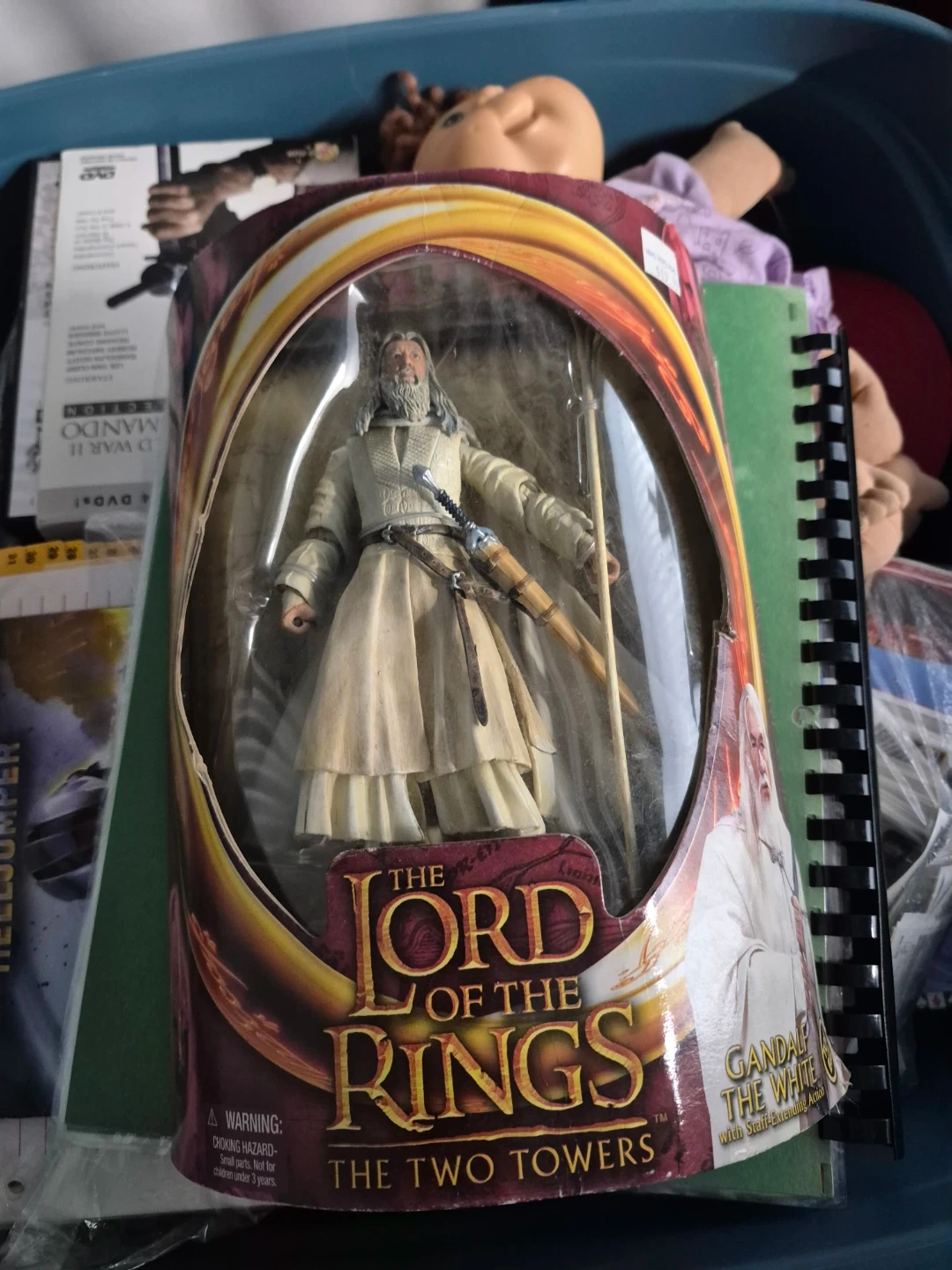 This is a Gandalf the White action figure from The Lord of the Rings: The Two Towers. It includes his staff and sword. It's in original packaging.