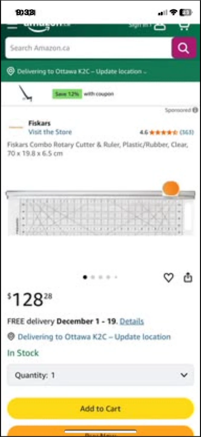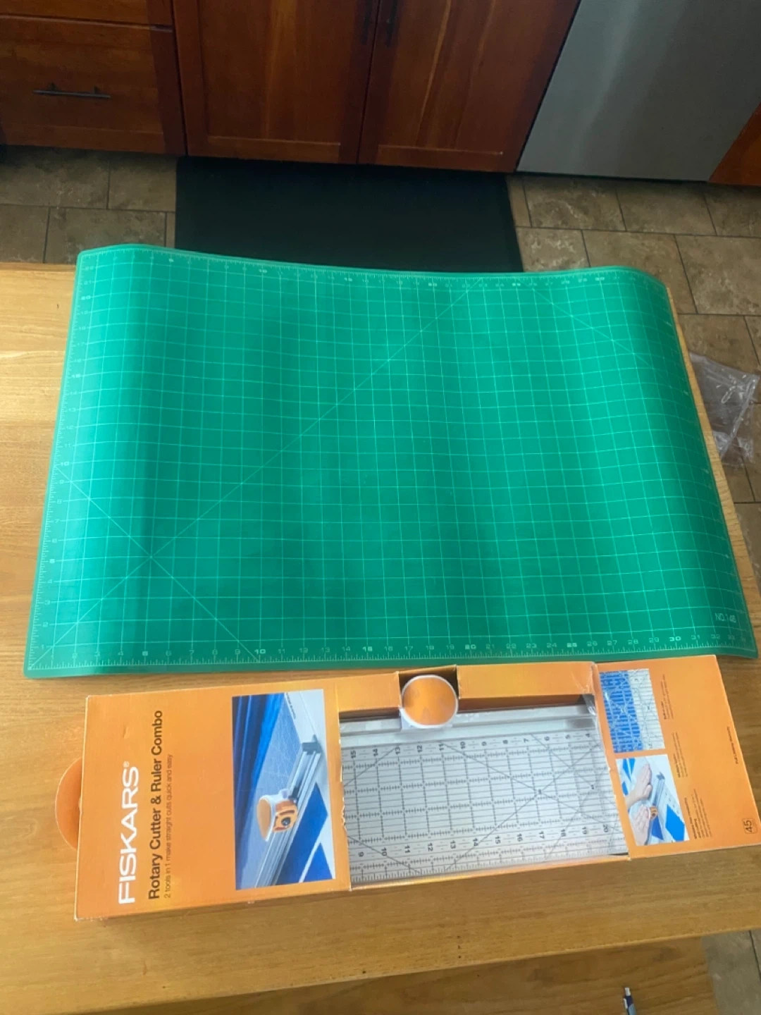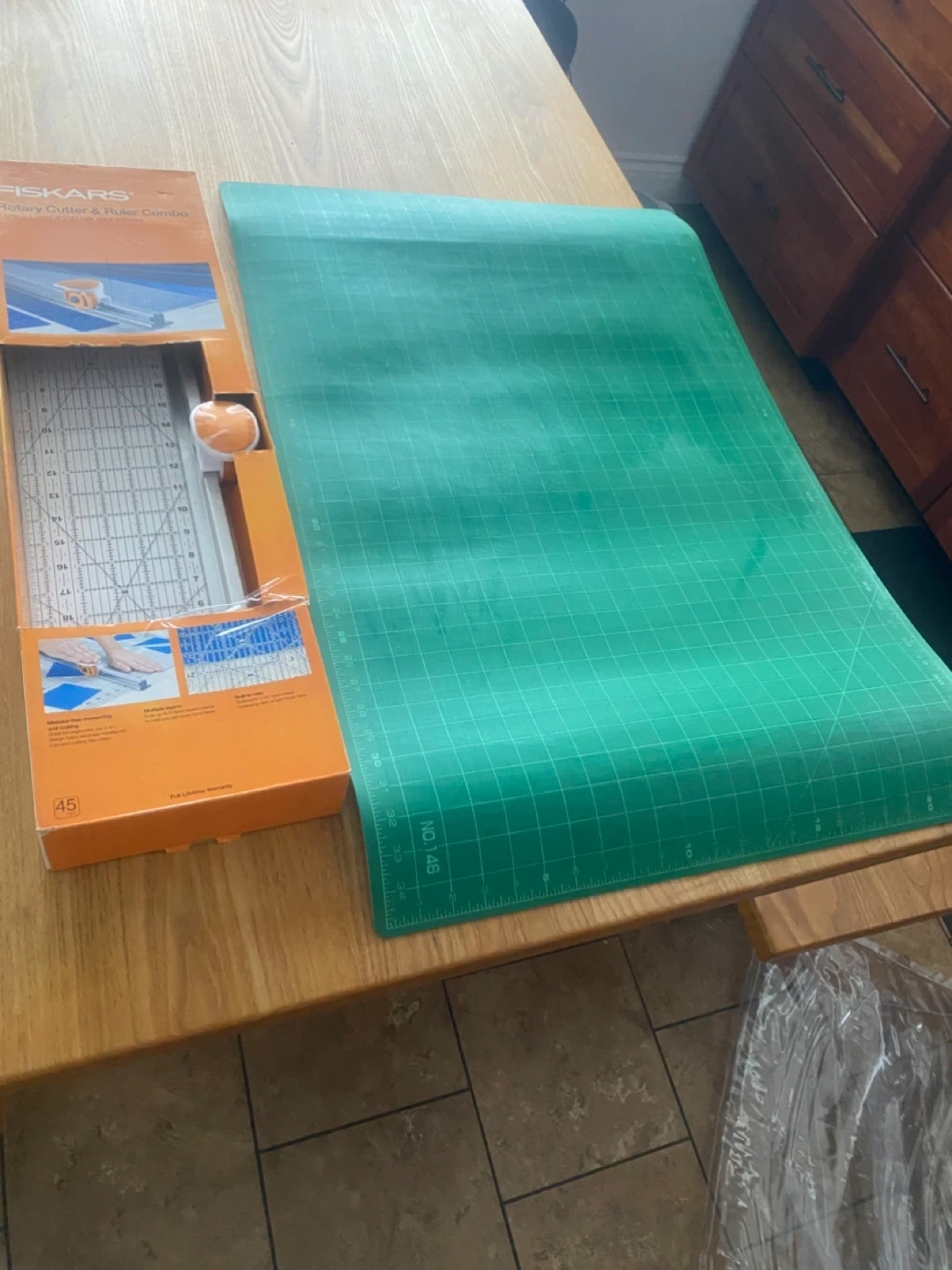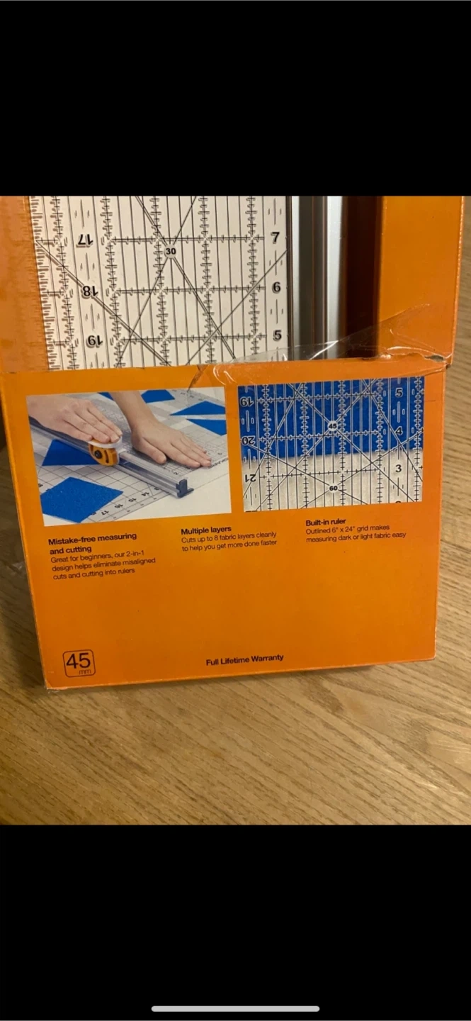 I'm selling a brand new Fiskars Rotary Cutter & Ruler Combo, still in its original box! This tool is perfect for precise measuring and cutting, making it great for beginners. It can cut through multiple layers of fabric clearly, helping you get more done faster. The built-in ruler features an outlined 6" x 24" grid, making measuring both dark and light fabrics easy. Get yours today!pick up Port Elmsley