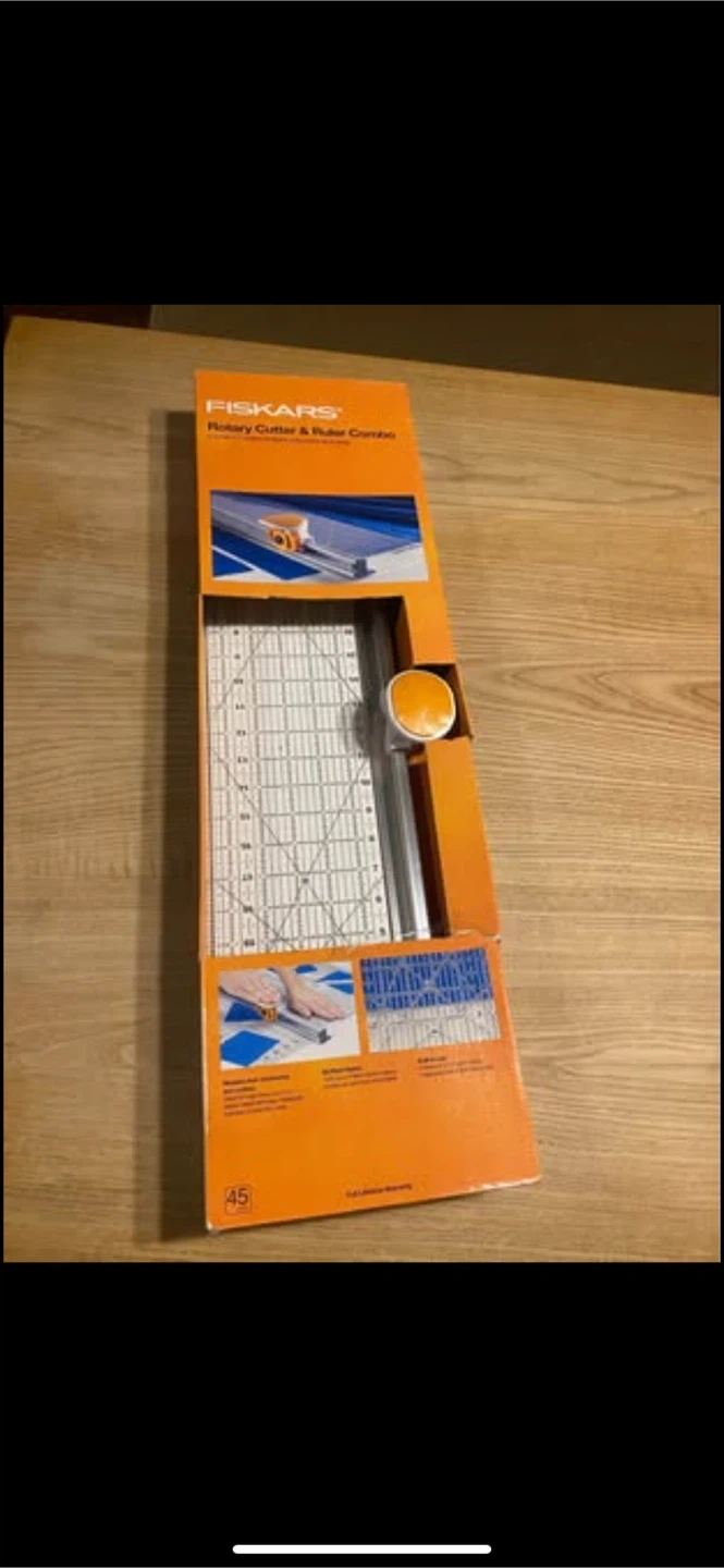 I'm selling a brand new Fiskars Rotary Cutter & Ruler Combo, still in its original box! This tool is perfect for precise measuring and cutting, making it great for beginners. It can cut through multiple layers of fabric clearly, helping you get more done faster. The built-in ruler features an outlined 6" x 24" grid, making measuring both dark and light fabrics easy. Get yours today!pick up Port Elmsley