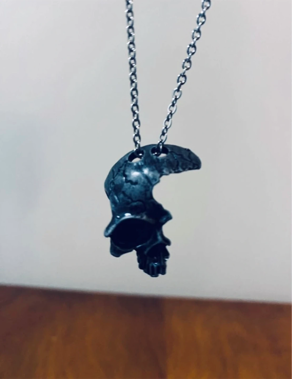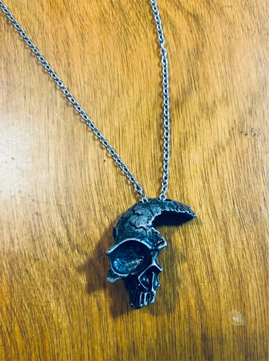 Gothic Half-Skull Pendant Necklace – Good Condition
