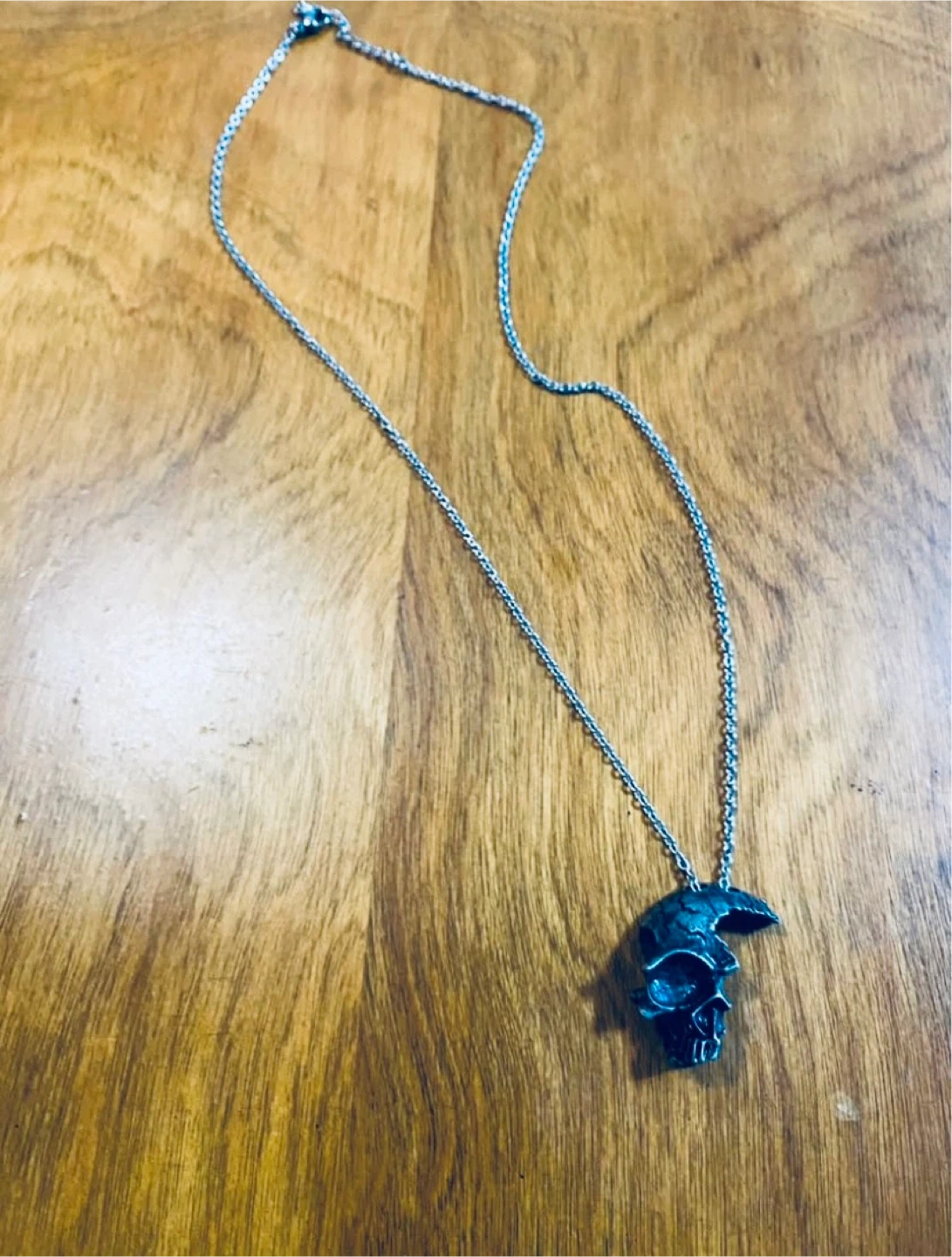 I’m selling a pre-owned half-skull pendant necklace with matching chain.