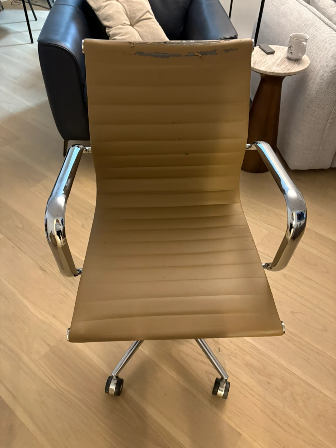 Leather on the seat is damaged as shown in the photo but it is still in great working condition and has lots of life left!