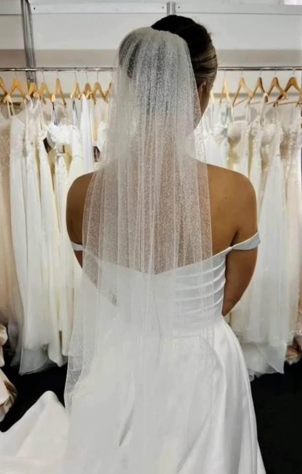 Retail $429. New & flawless sparkle structure veil. Soft white with comb, 80cm. Please respect pricing. God Bless!
