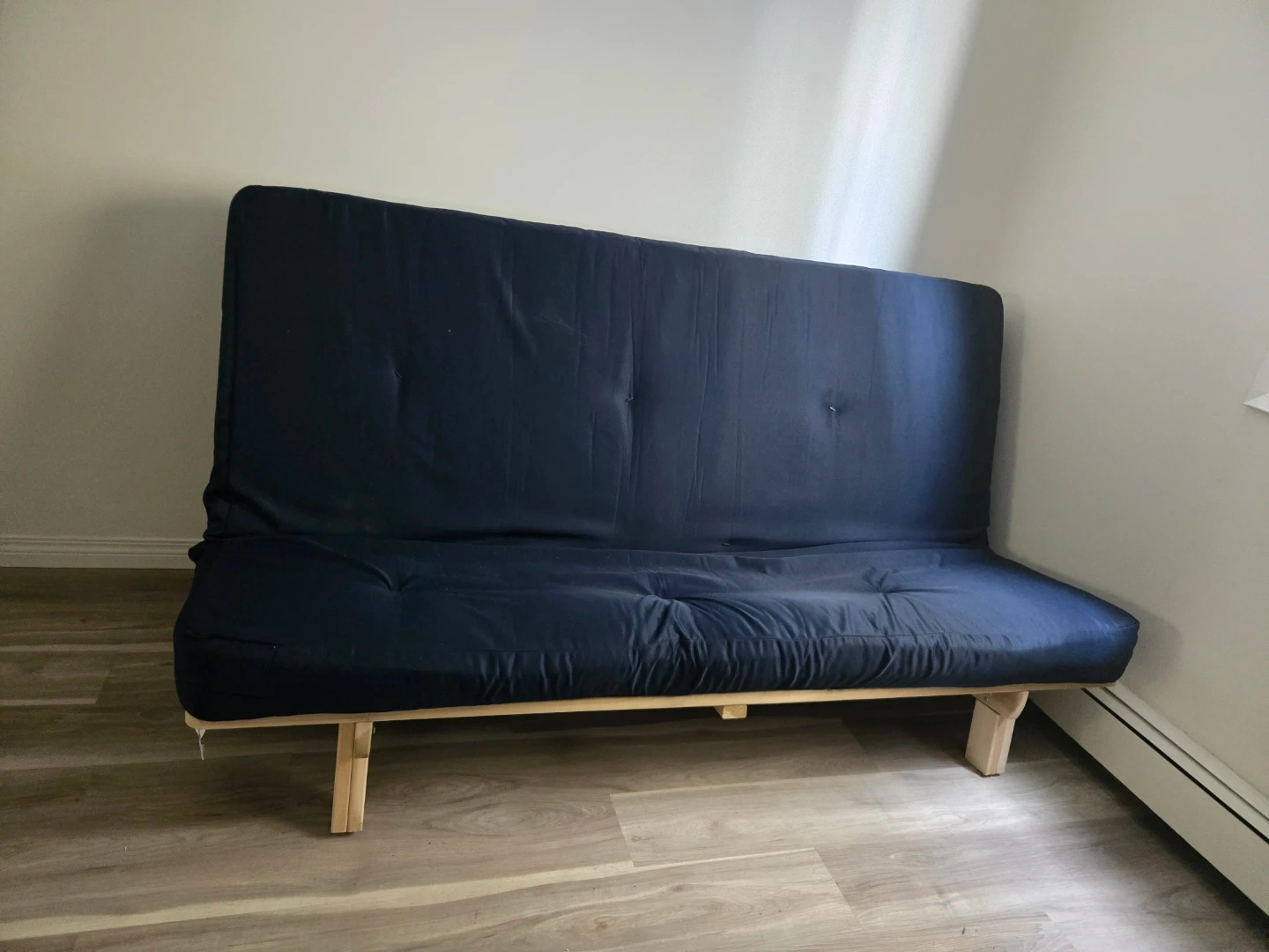 Dark Blue Futon with Wood Frame & foam mattress topper