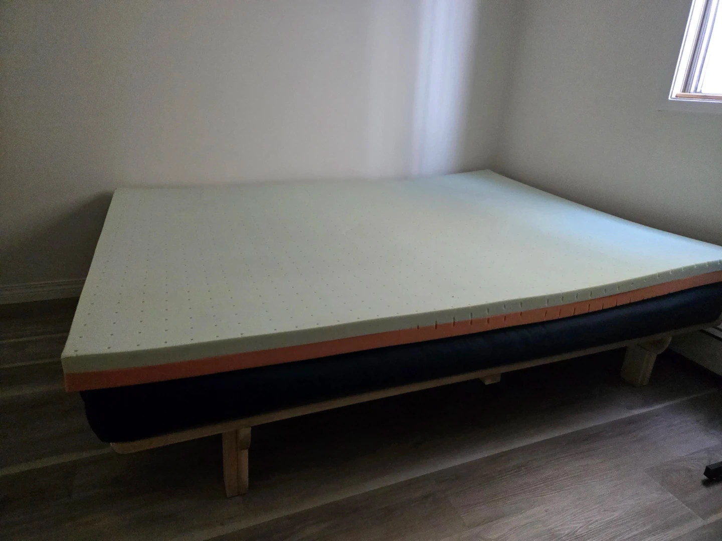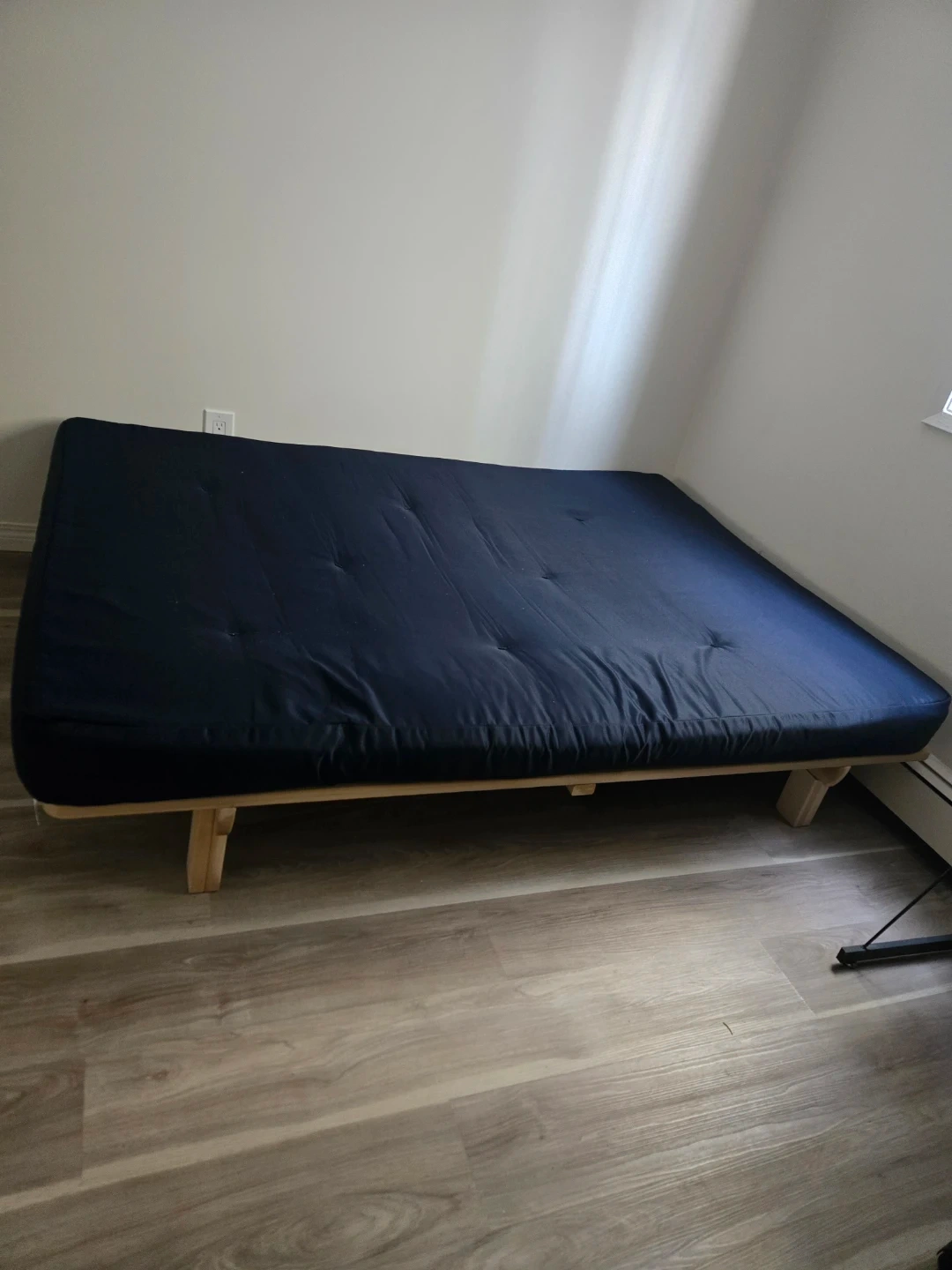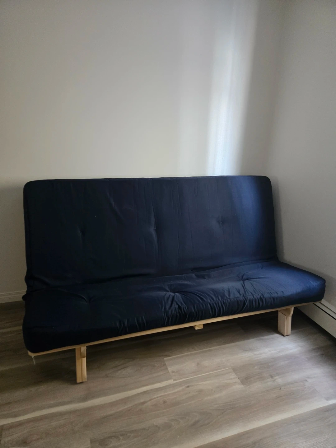 Dark Blue Futon with Wood Frame & foam mattress topper