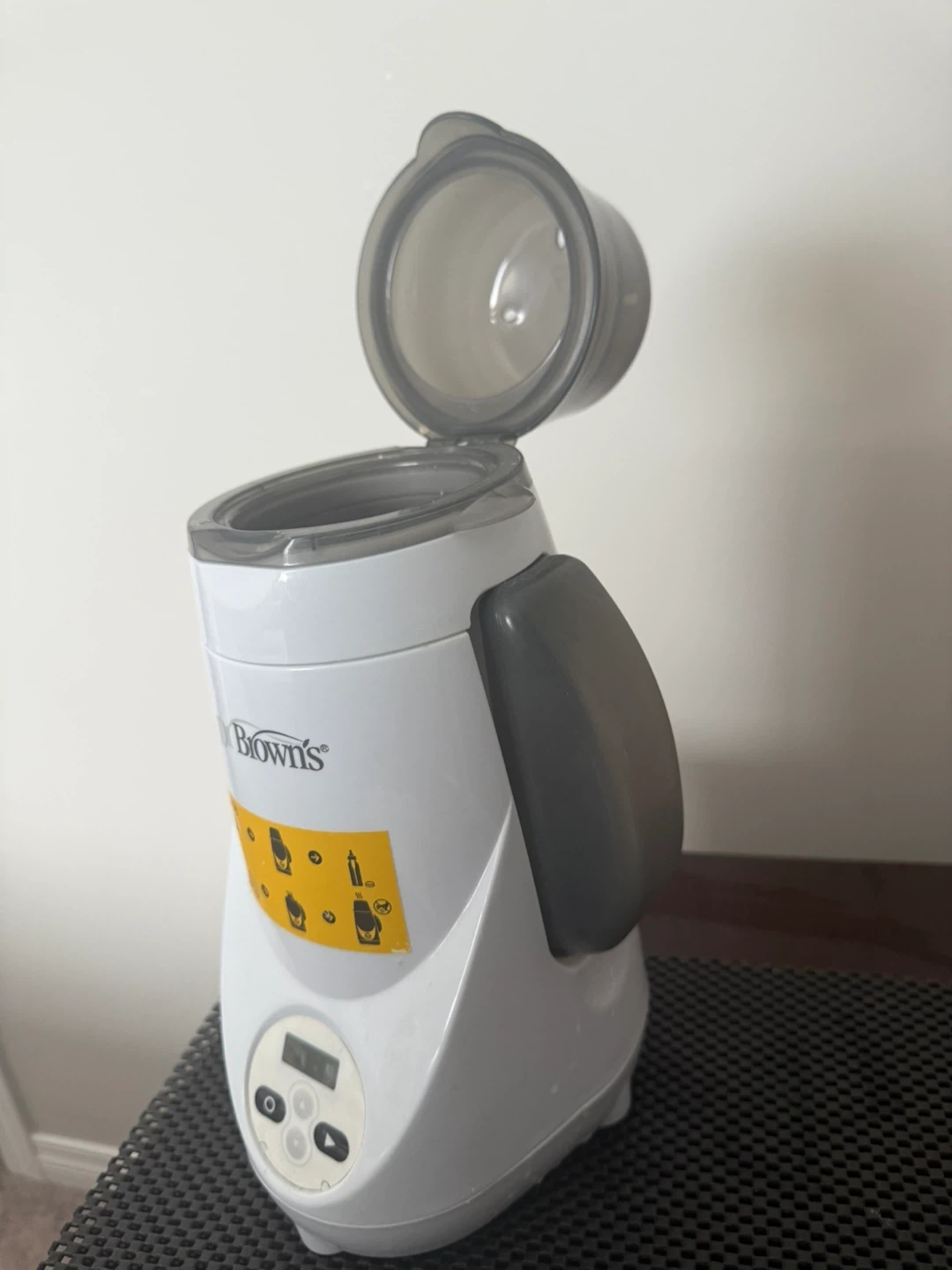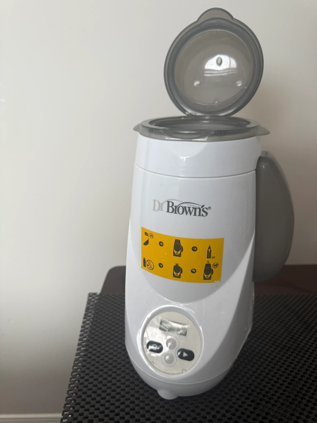 Dr. Brown's bottle warmer for baby bottles. It features an easy-to-use digital display and controls. This warmer is designed for quickly and safely warming bottles.