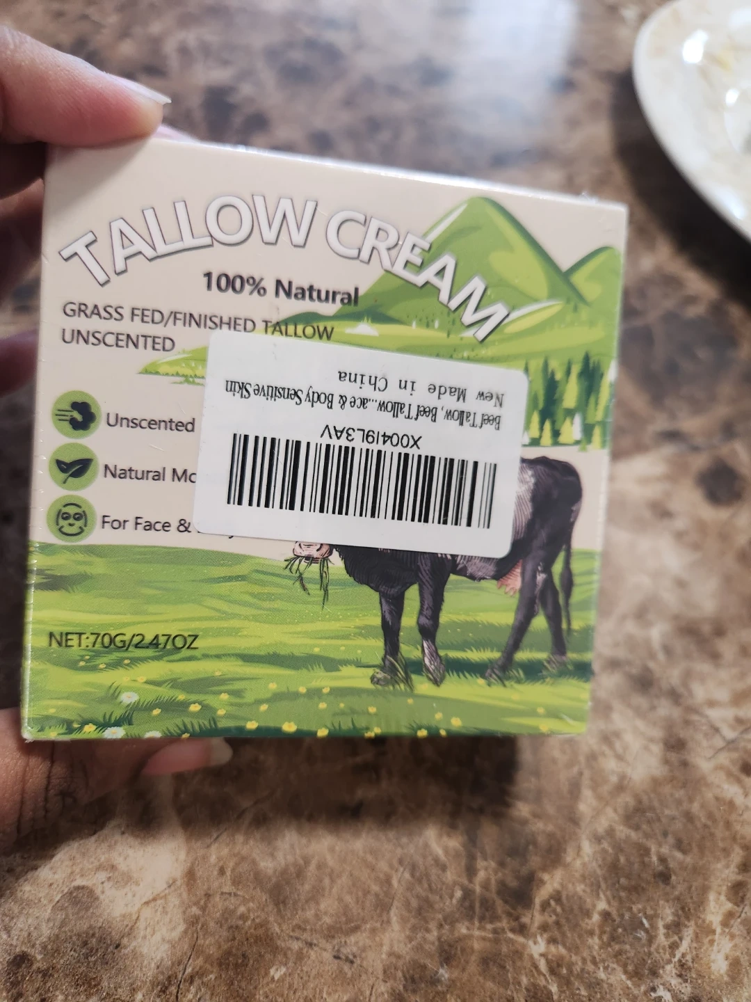 This is a 100% natural Tallow Cream, made with grass-fed finished tallow. It's unscented and suitable for face and body. The net weight is 70g or 2.47oz. Price is firm. Pick up midland and Danforth or 401 bay street