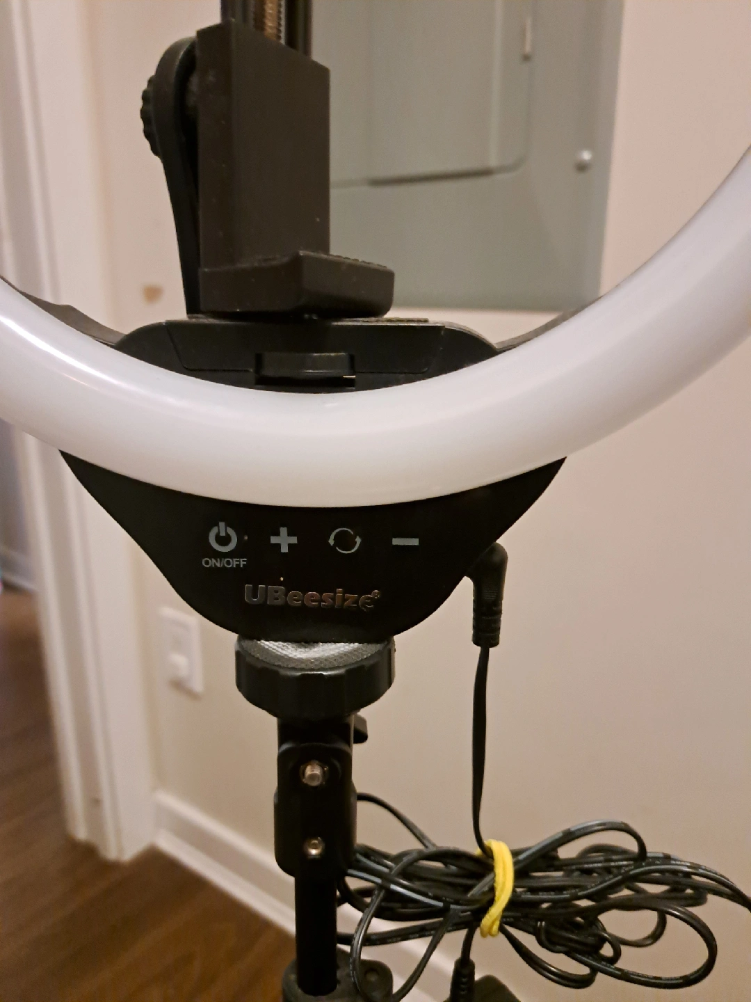 Selling a UBeesize selfie ring light that comes with a tripod stand. It's perfect for video recording or taking photos. It's in great condition and ready for a new home!