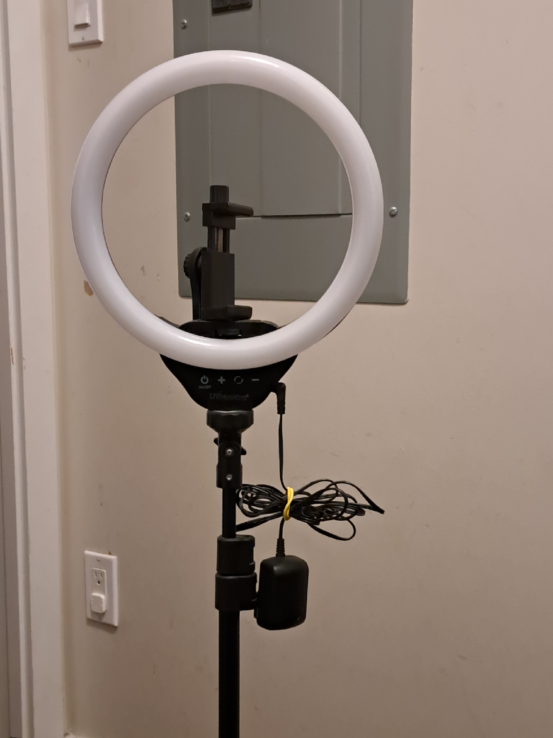 Selling a UBeesize selfie ring light that comes with a tripod stand. It's perfect for video recording or taking photos. It's in great condition and ready for a new home!